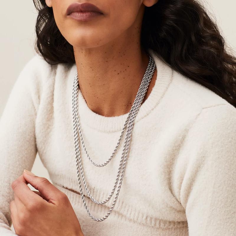 Elevate your look with our stainless steel twisted rope chain necklace. This versatile accessory adds a touch of texture and sophistication to any outfit, making it a must-have for every jewelry collection.