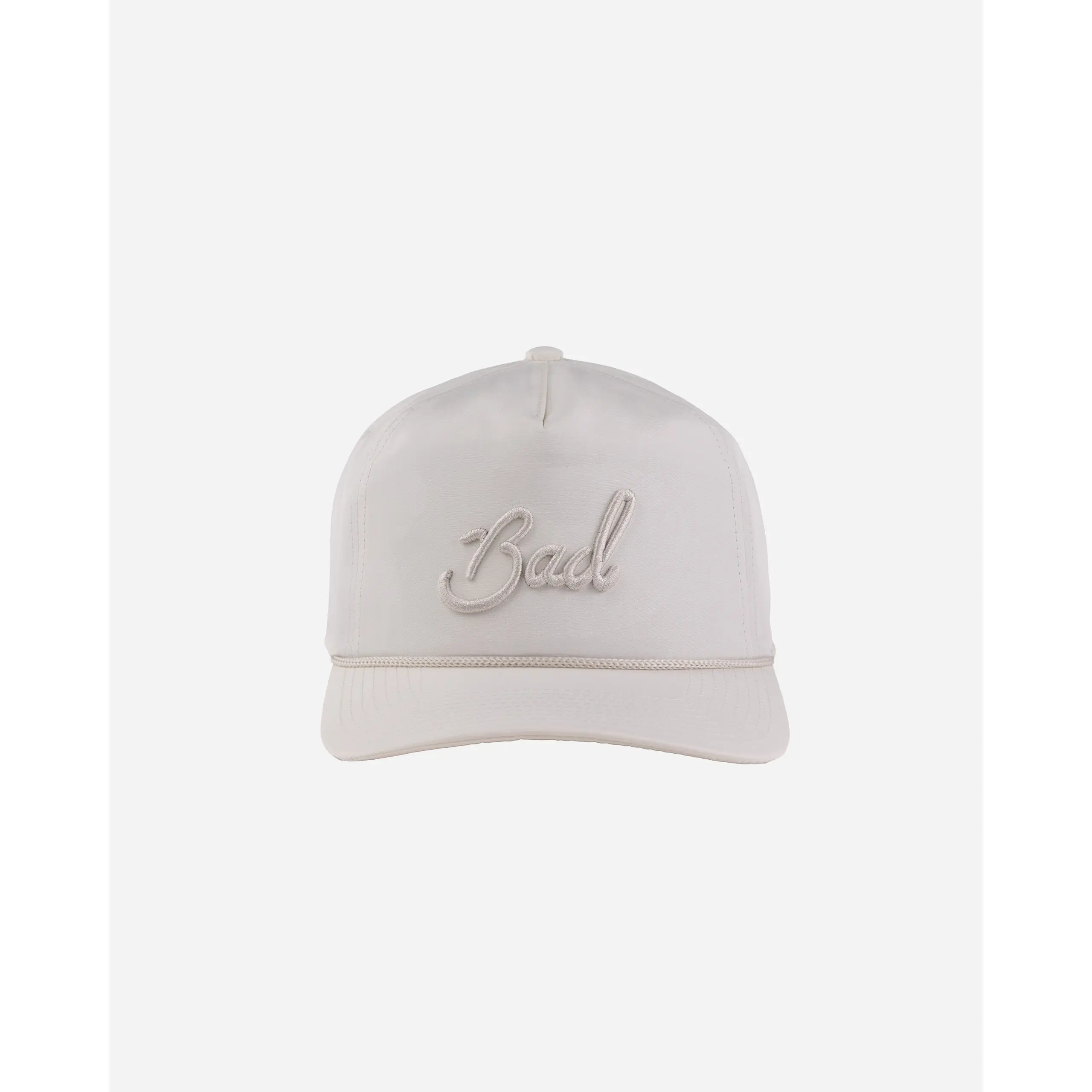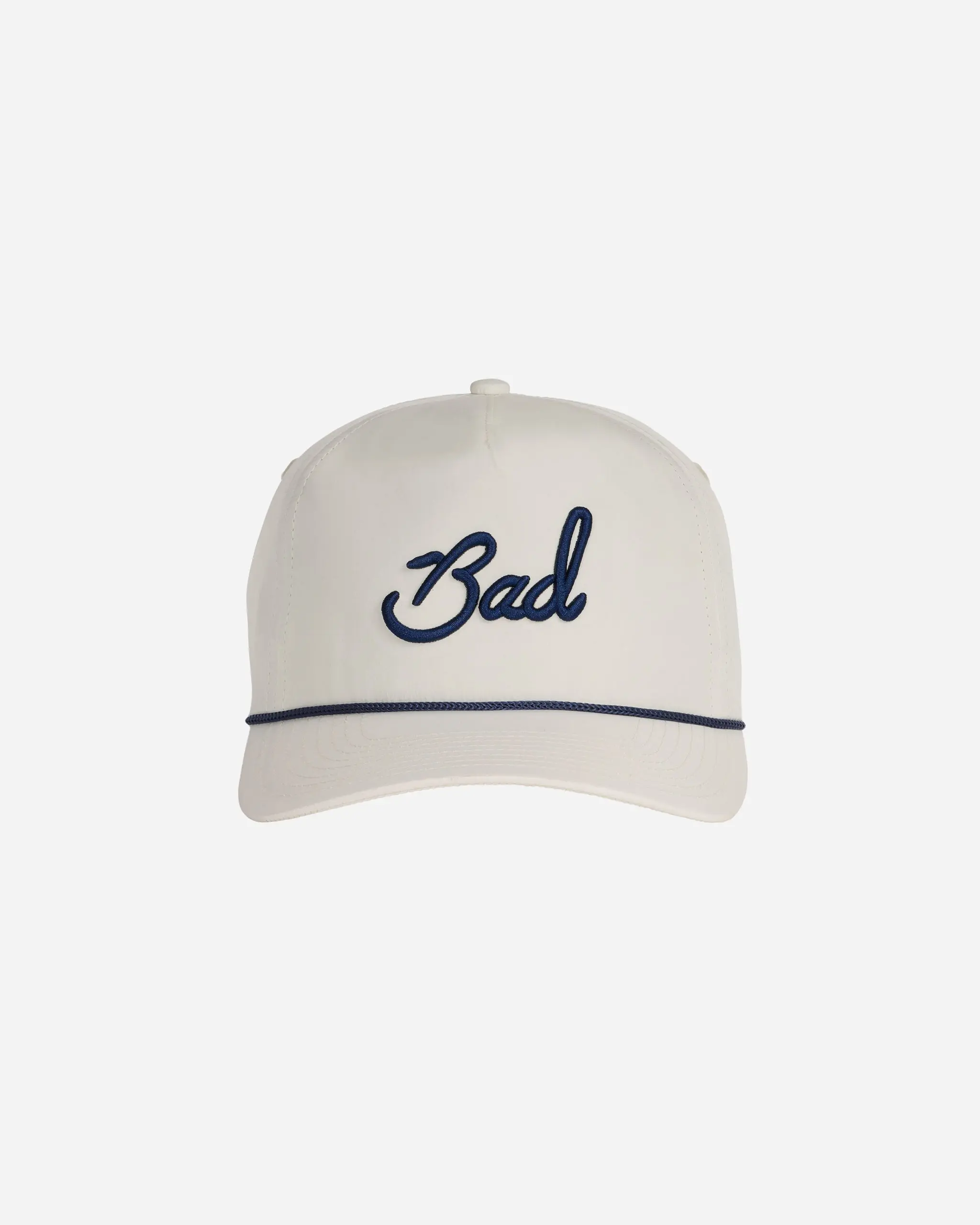 Our signature cap combines head-turning style with all-day comfort. Featuring bold "Bad" script embroidery and our iconic vintage-inspired rope detail across the brim, it's the hat that started a movement. Crafted from 100% polyester for durability and performance, this timeless accessory makes a statement without saying a word. Perfect for players who know that standing out on the course is just as important as how you play it.