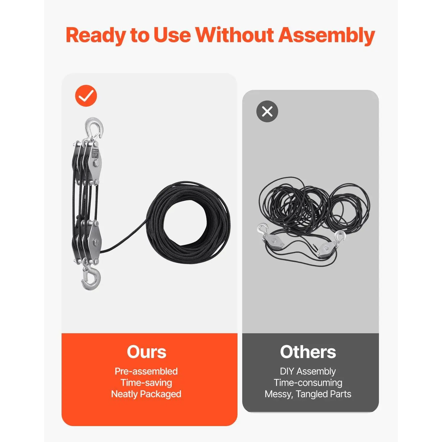 • Efficient Lifting Ratio: Forget about straining your back! This pulley system has a 5:1 lifting ratio, meaning you only need 1/5 of the usual effort to lift heavy items. It saves your energy and protects your back from strain, making it a thoughtful gift for friends or family who need help with lifting.