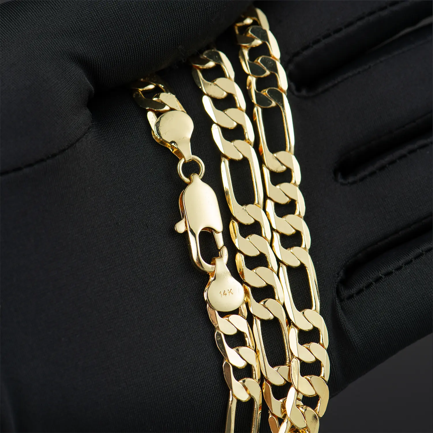 This 8mm Figaro bracelet does not match standard Figaro chain links. The link pattern and proportions are off, so it looks mismatched when worn with other Figaro jewelry. Not what I expected at all.