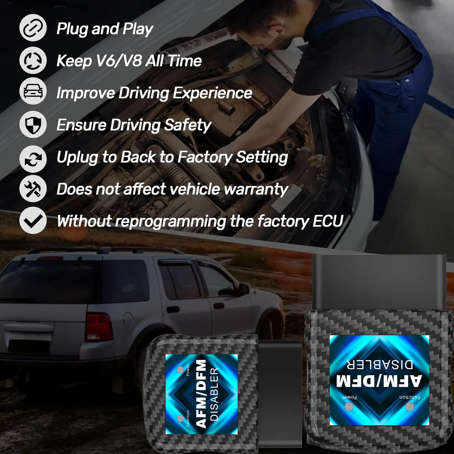 · Leaves no trace, Unplug it to return to factory settings. This AFM Disabler does not reprogram your factory ECU.