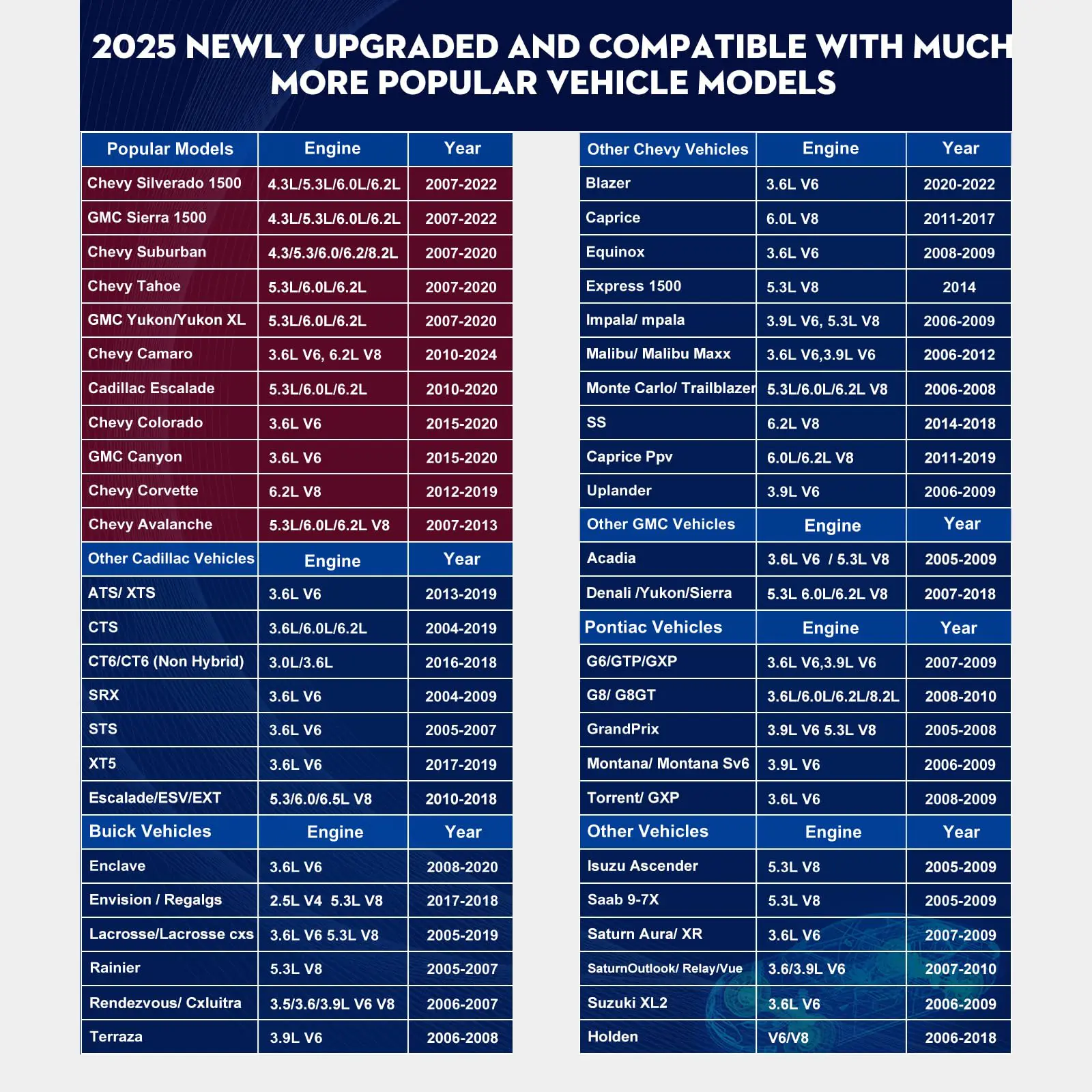· Compatible with most V6 & V8 GM active or dynamic fuel management motors, includes cars, trucks & SUVs.