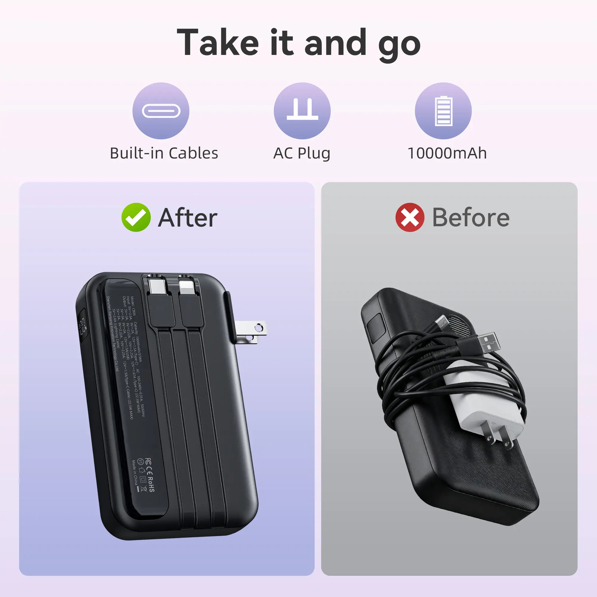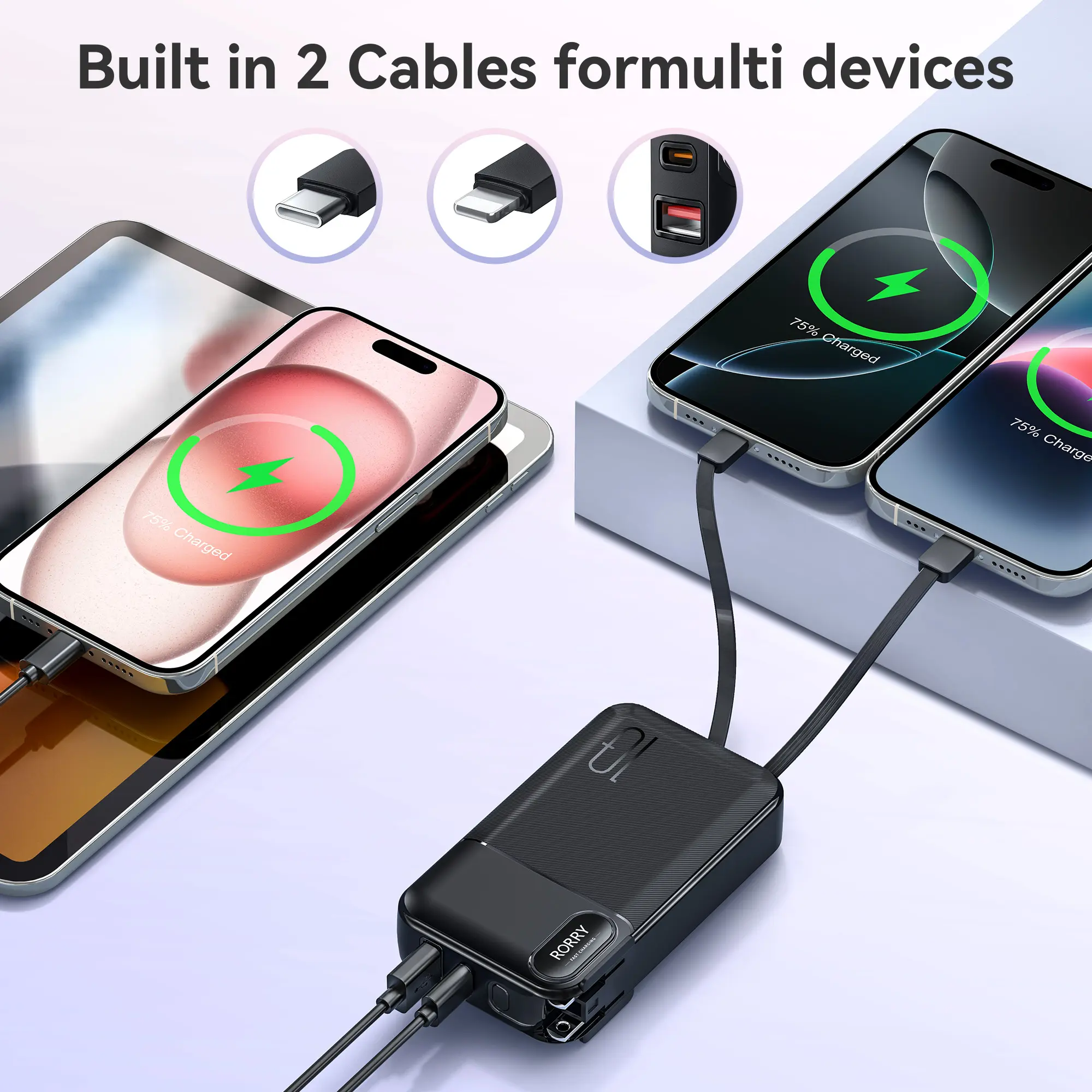 ·Cables: Built-in Type-C and Lightning cables