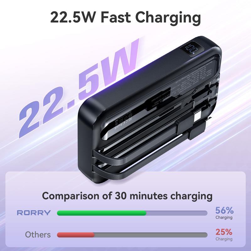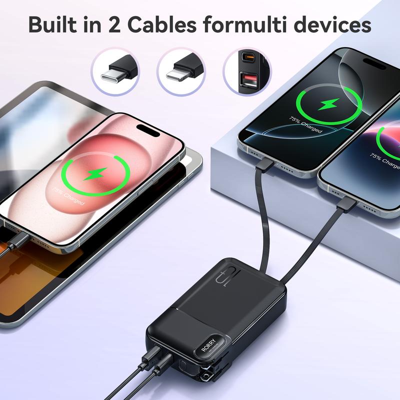 RORRY 10000mAh Portable Charger with Built-in Cables & AC Wall Plug 22.5W Fast Charging for iPhone Samsung Galaxy LG iPad Lightweight Power Bank Smartphone Compact Battery Packs Foldable TikTokShopBlackFrid
