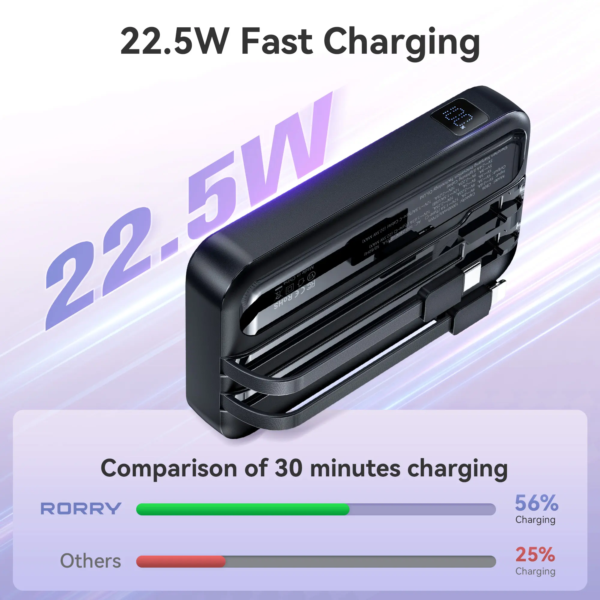 ·22.5W Fast Charging: Supports high-power output for ultra-fast charging via the built-in foldable plug or USB-C port.