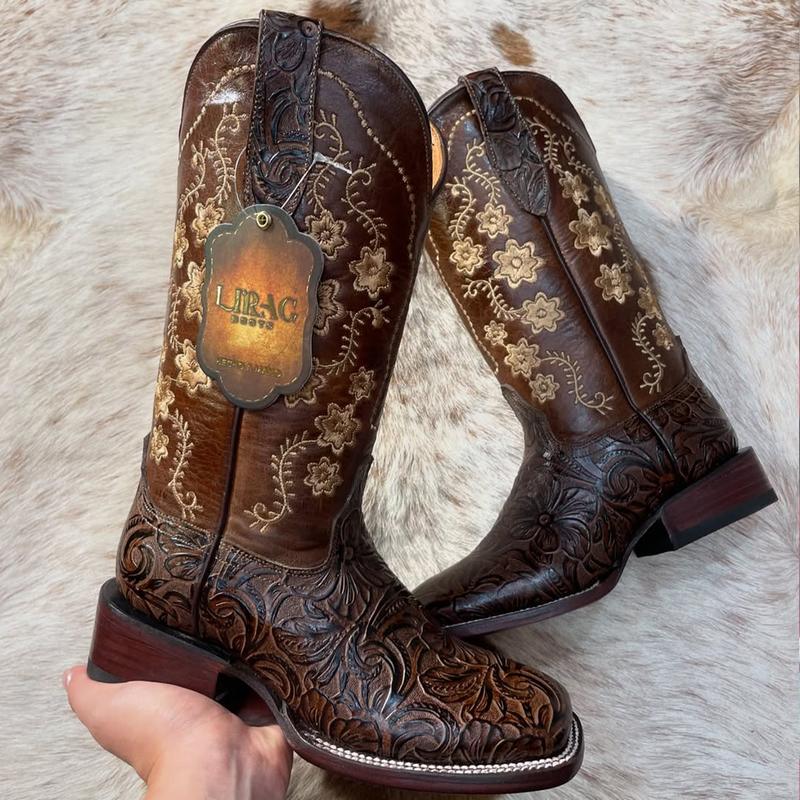 Rosario Brown Tooled Cowgirl Boots