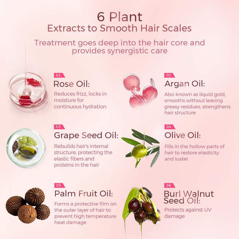 Smells amazing, like fresh cut roses and makes your dry hair feel like glass.