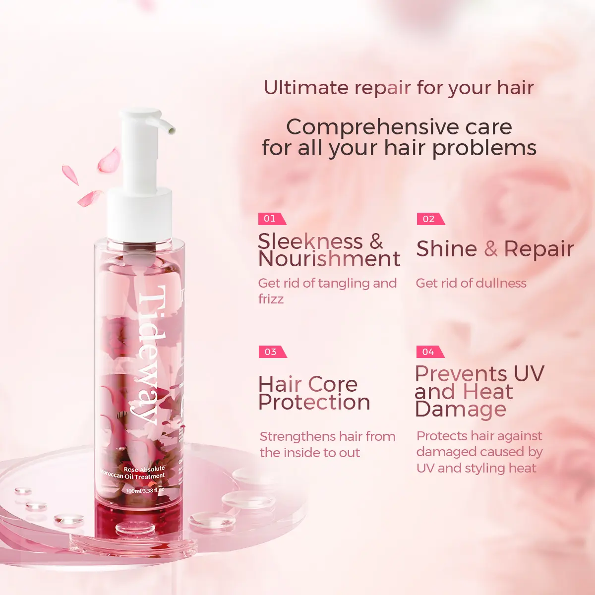 I am so glad that I got get a Tideway Beauty Rose Oil for my hair. My hair is so dried out brickly and this product has made me feel more positive when I look in the mirror it looks healthy it feels healthy and I feel beauty