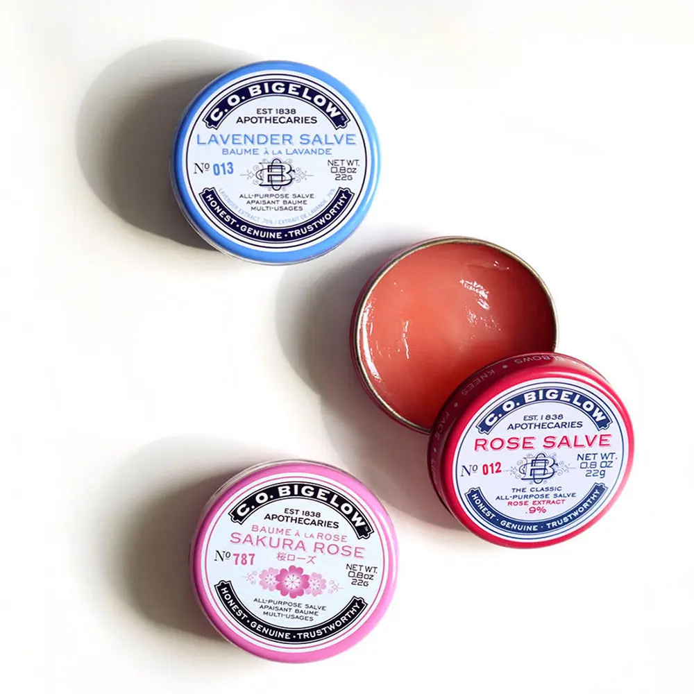 C.O. Bigelow's famous Rose Salve has been a favorite since the early days, due to its ability to care for lips and beautify skin. Emulsified with extra-soothing rose extract, which helps ease irritation and condition the skin. May be used on lips, face, cuticles, elbows, knees, chapped or very dry skin patches.