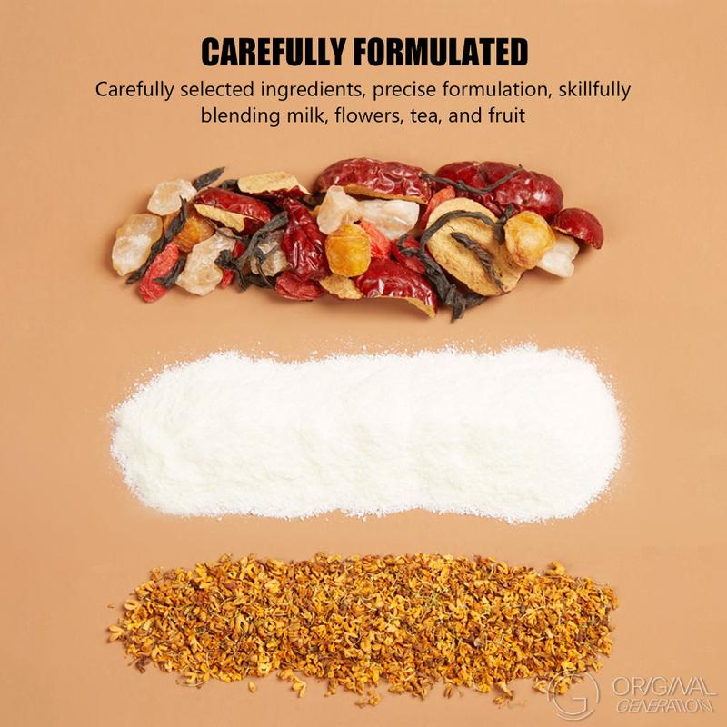 Ingredient: Red Dates, Rock Sugar, Longan, Goji Berry, New Zealand Milk, Golden Needle Black Tea