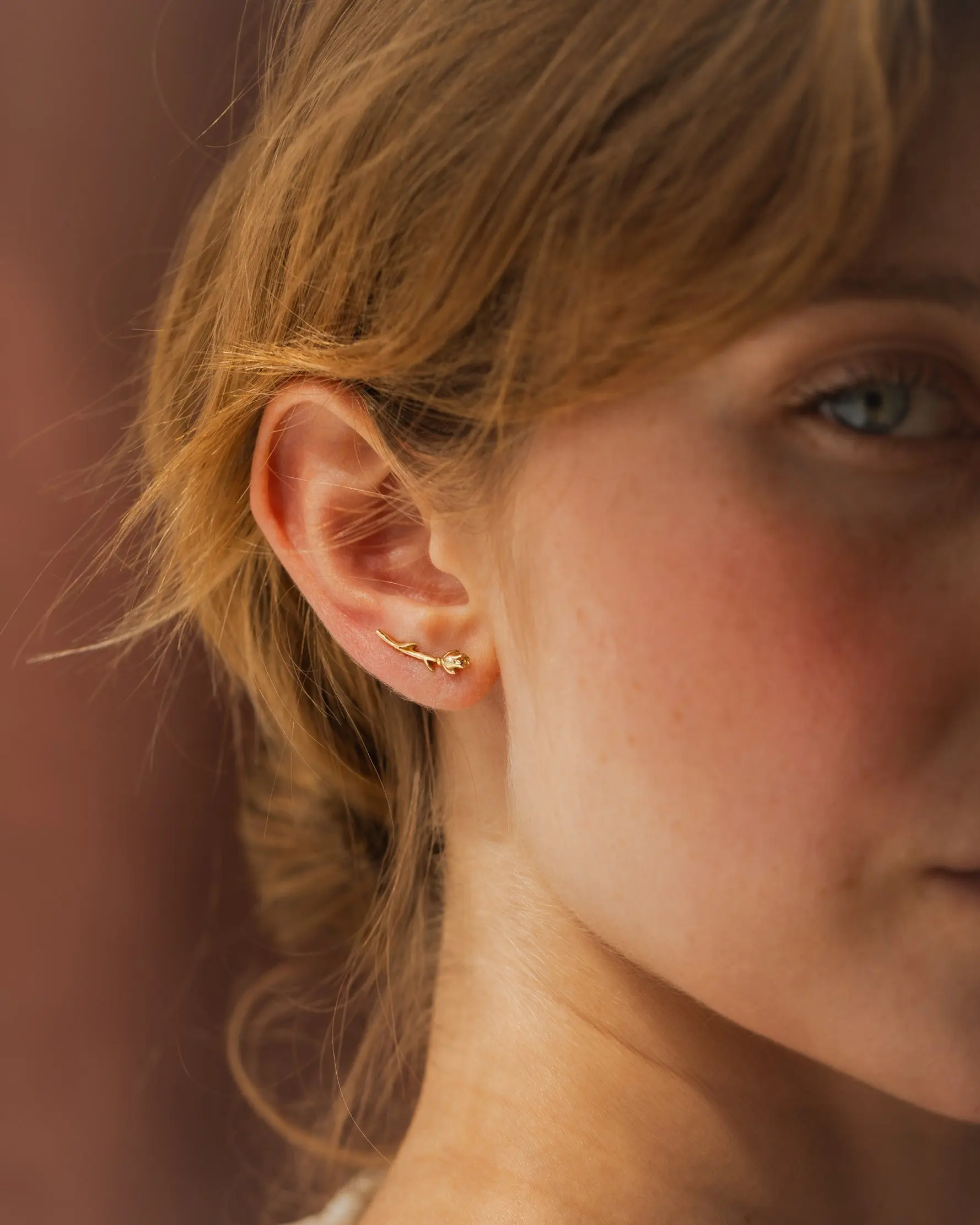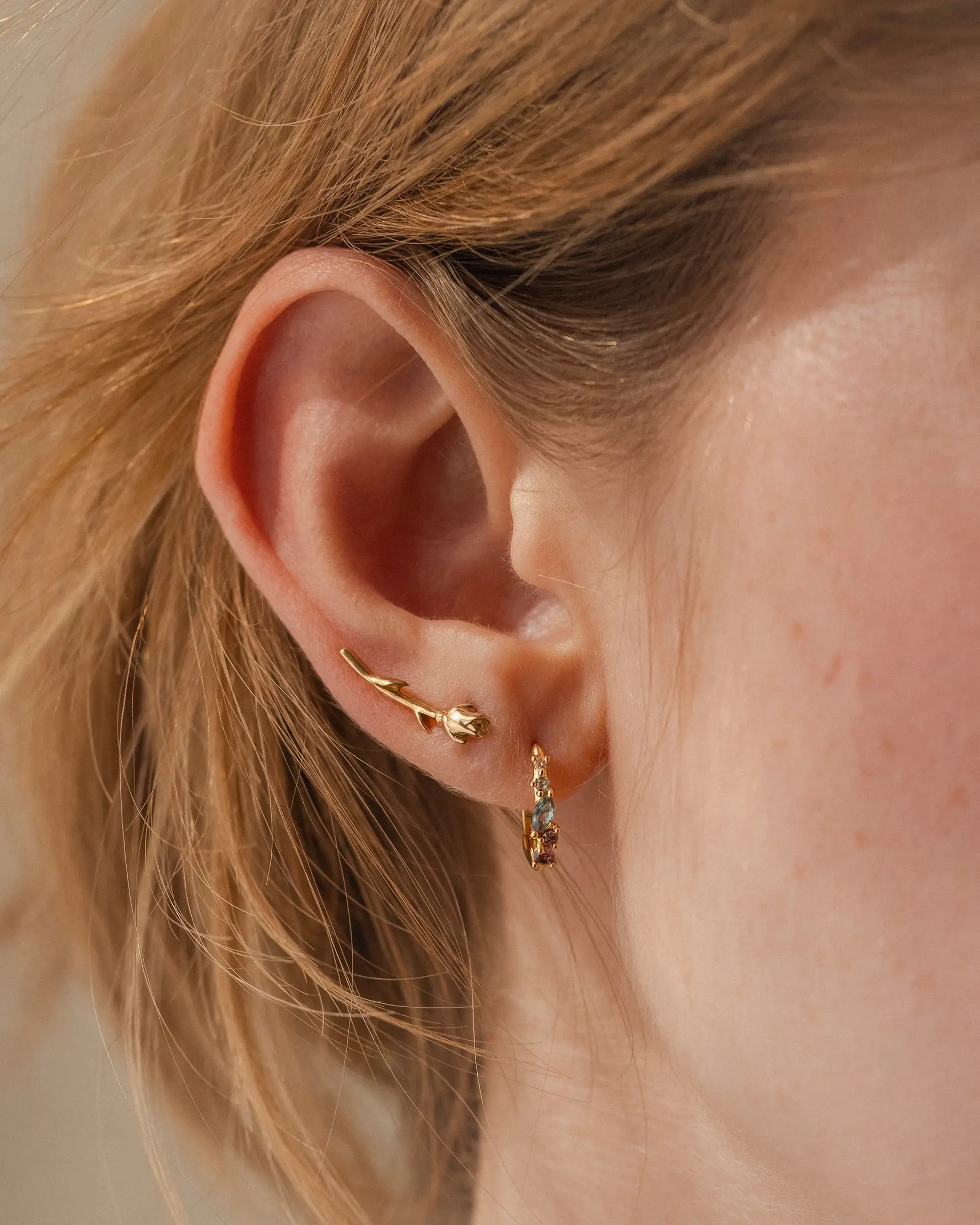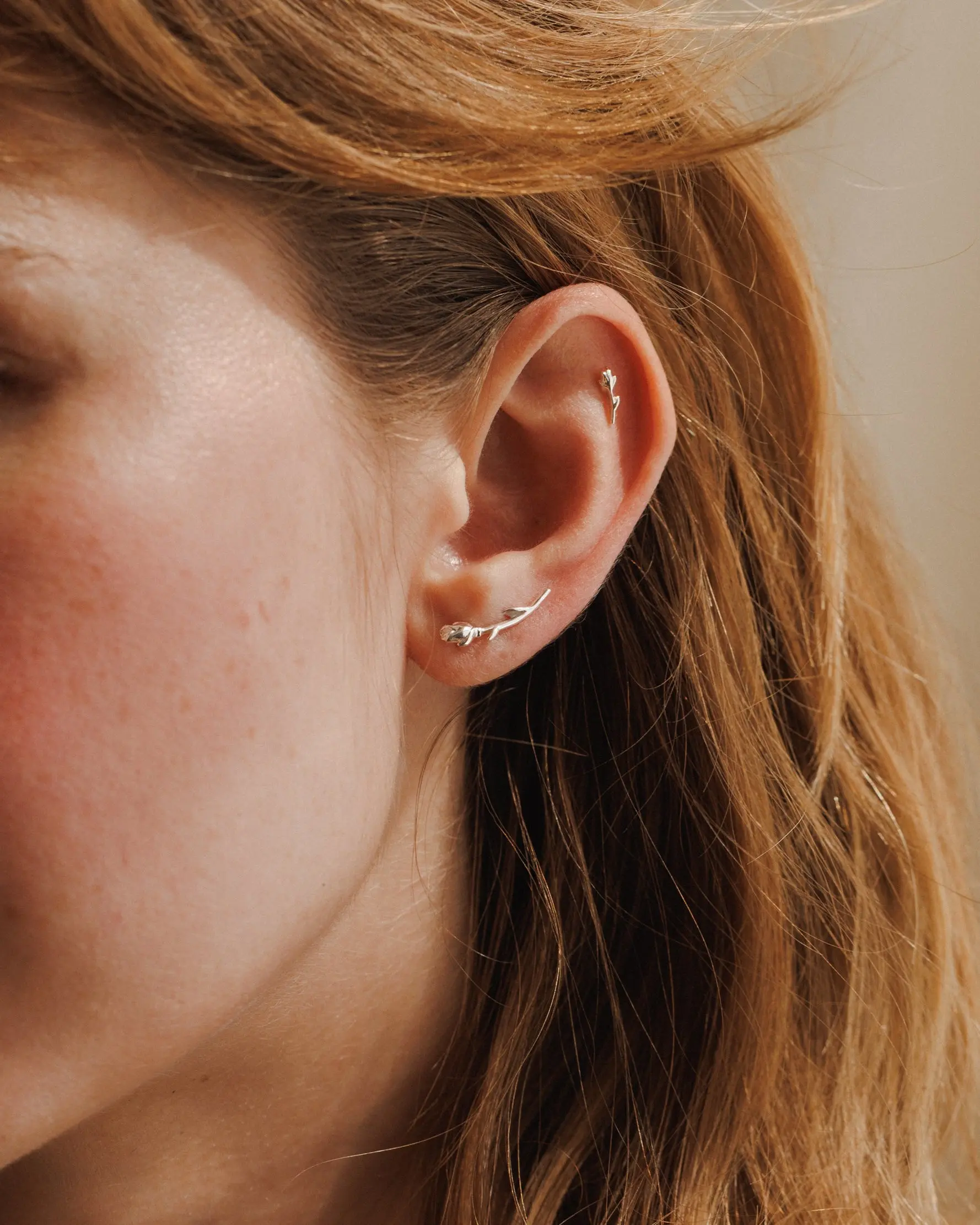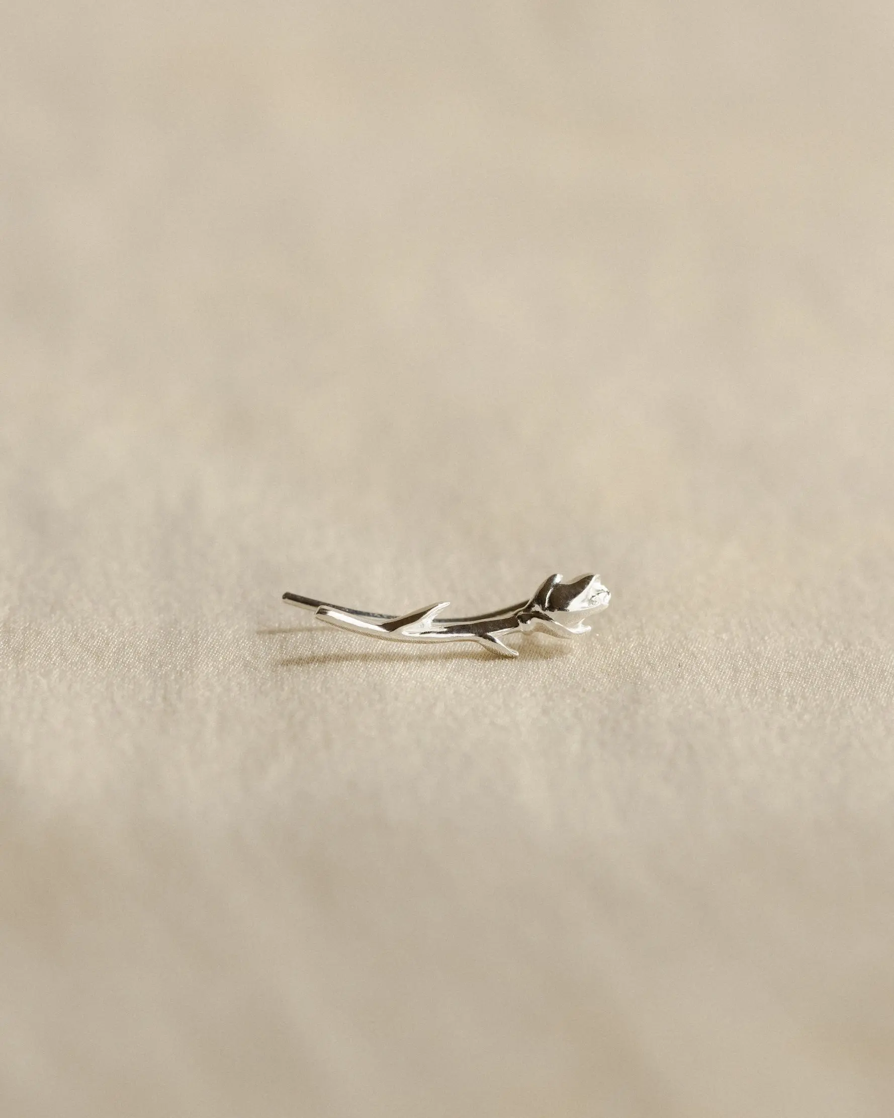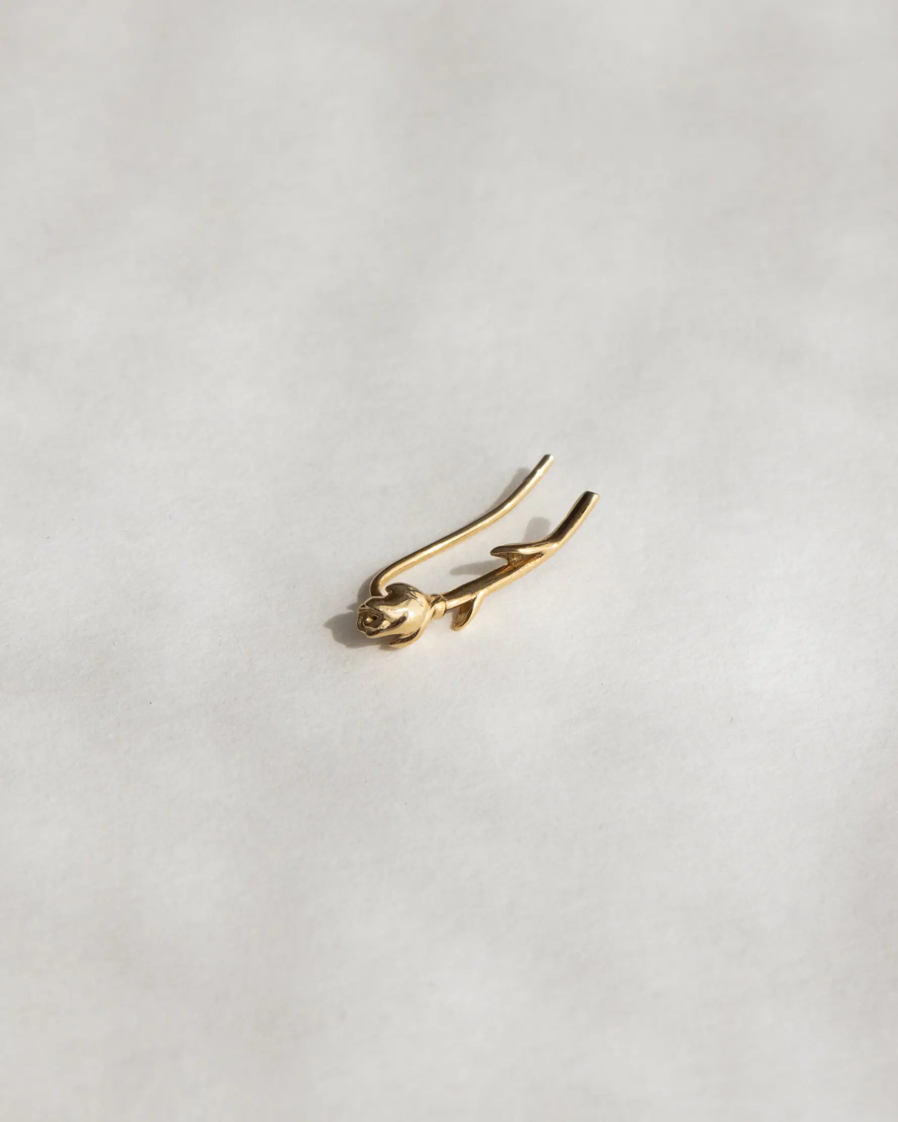 A favourite addition to my collection! The curve follows naturally and beautifully along my ear second hole piercing! The details on petals and leaves catch the light so nicely