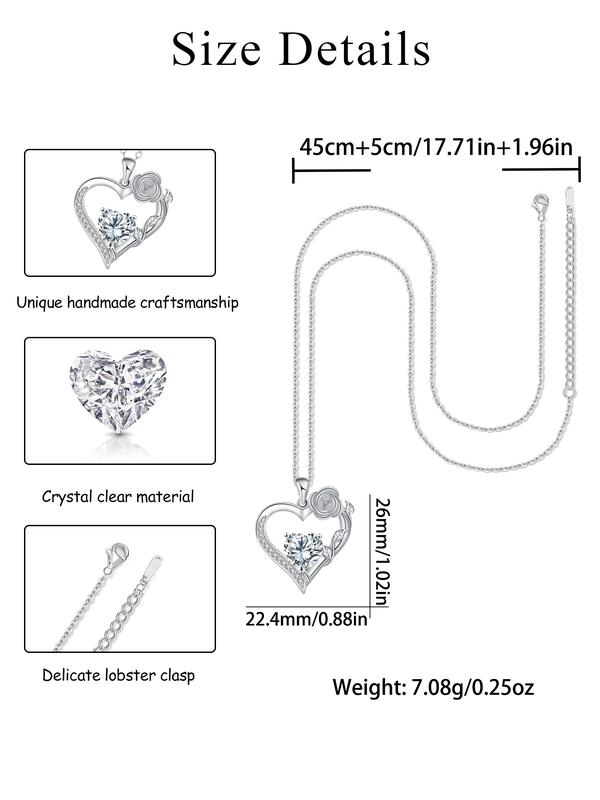 Rose Flower Heart Pendant Necklace With Rose Jewelry Gift Box, Exquisite Jewelry Gift, Anniversary Valentines Day Necklace Gift for Wife Girlfriend, Birthday Gifts for Mom Daughter