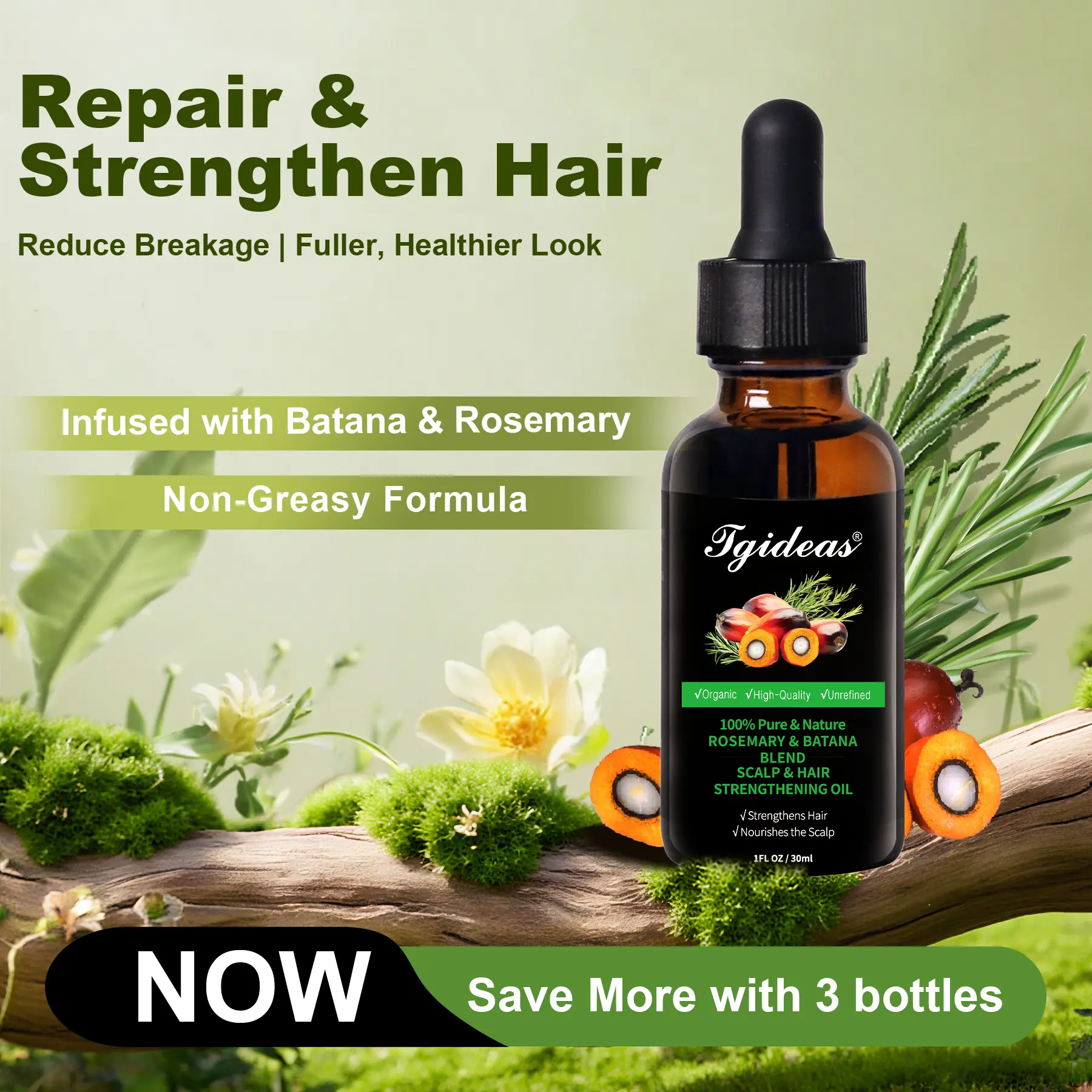 Experience the ultimate in hair care with Tgideas Rosemary & Batana Oil. This 100% organic essential oil for hair is blended with Jojoba & Argan oil to provide a luxurious daily nourishment solution.