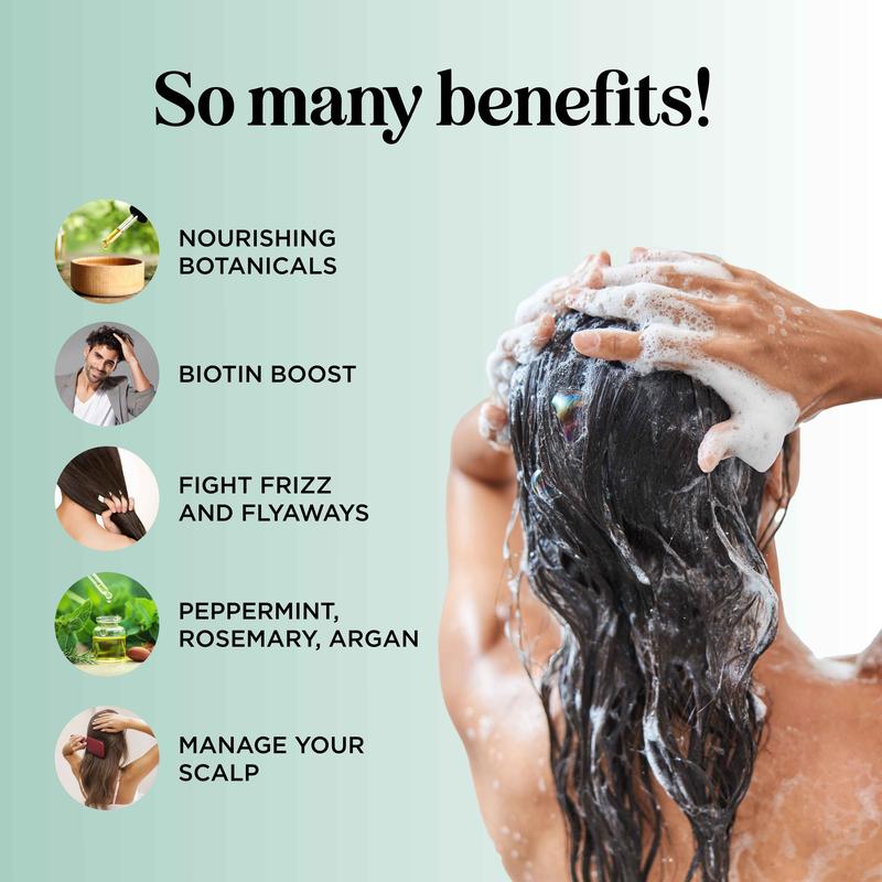 ·Essential Oil Formula: Experience the power of botanical extracts such as rosemary, jojoba and argan oil to hydrate and uplift your hair.