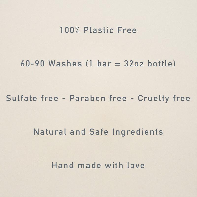 Sulfate free, Paraben free, Cruelty free, Plastic free