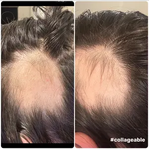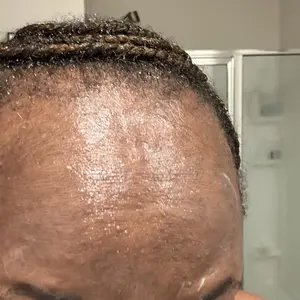 Thus product is the best hair growth oil based on results and smell and I went bald giving up but this was my last resort before pure baldom . Red was before I used the product and less than 4 weeks later you can see lots of new growth on the edges of my head I expect full coverage in 45-60