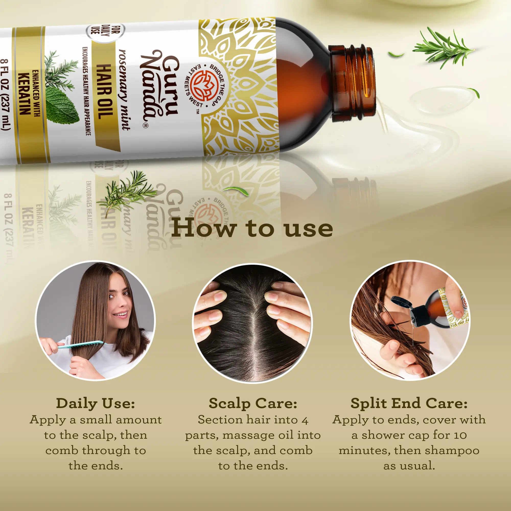 I highly recommend us product. Put it in your hair and massage through. Leave it for half an hour, then jump and shower. Your hair will be so smooth, shiny, and it will grow. I really recommend this oil the best.