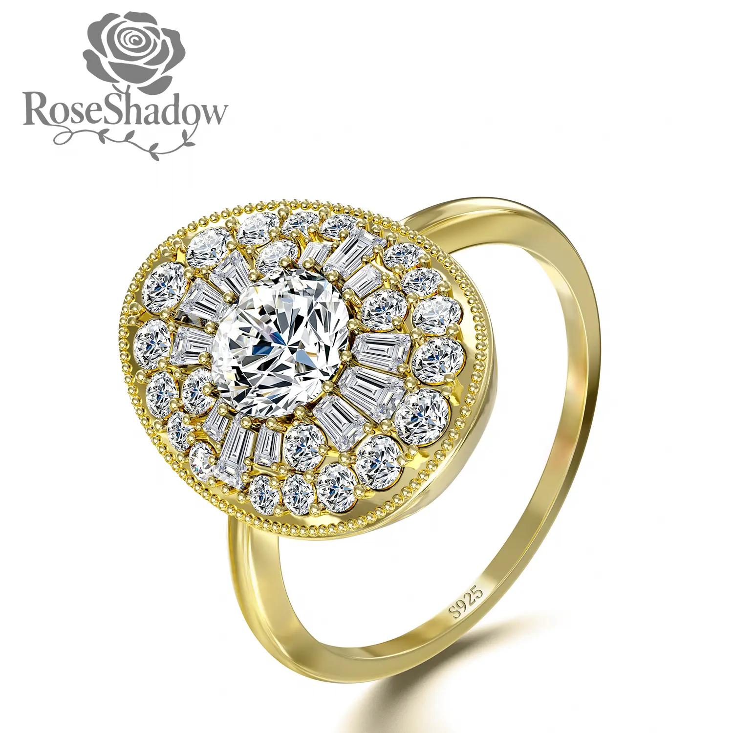 5. ROSESHADOW 1CT Moissanite Rings for Women Oval 14K Gold Plated Sterling Silver D Color VVS1 Synthetic Moissanite Promise Engagement Bands Fine Jewelry Gifts for Her