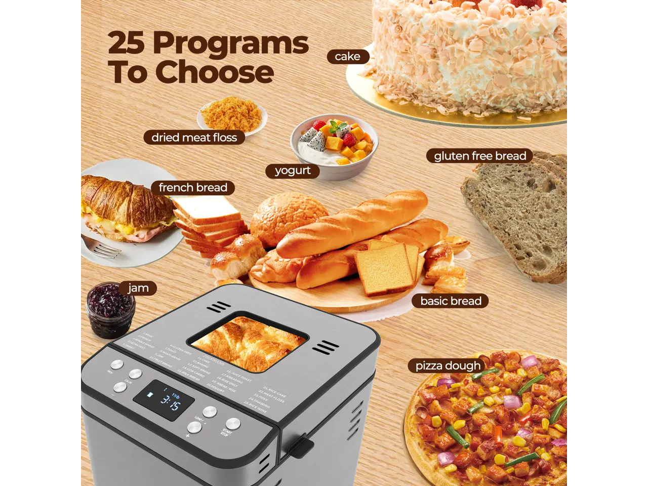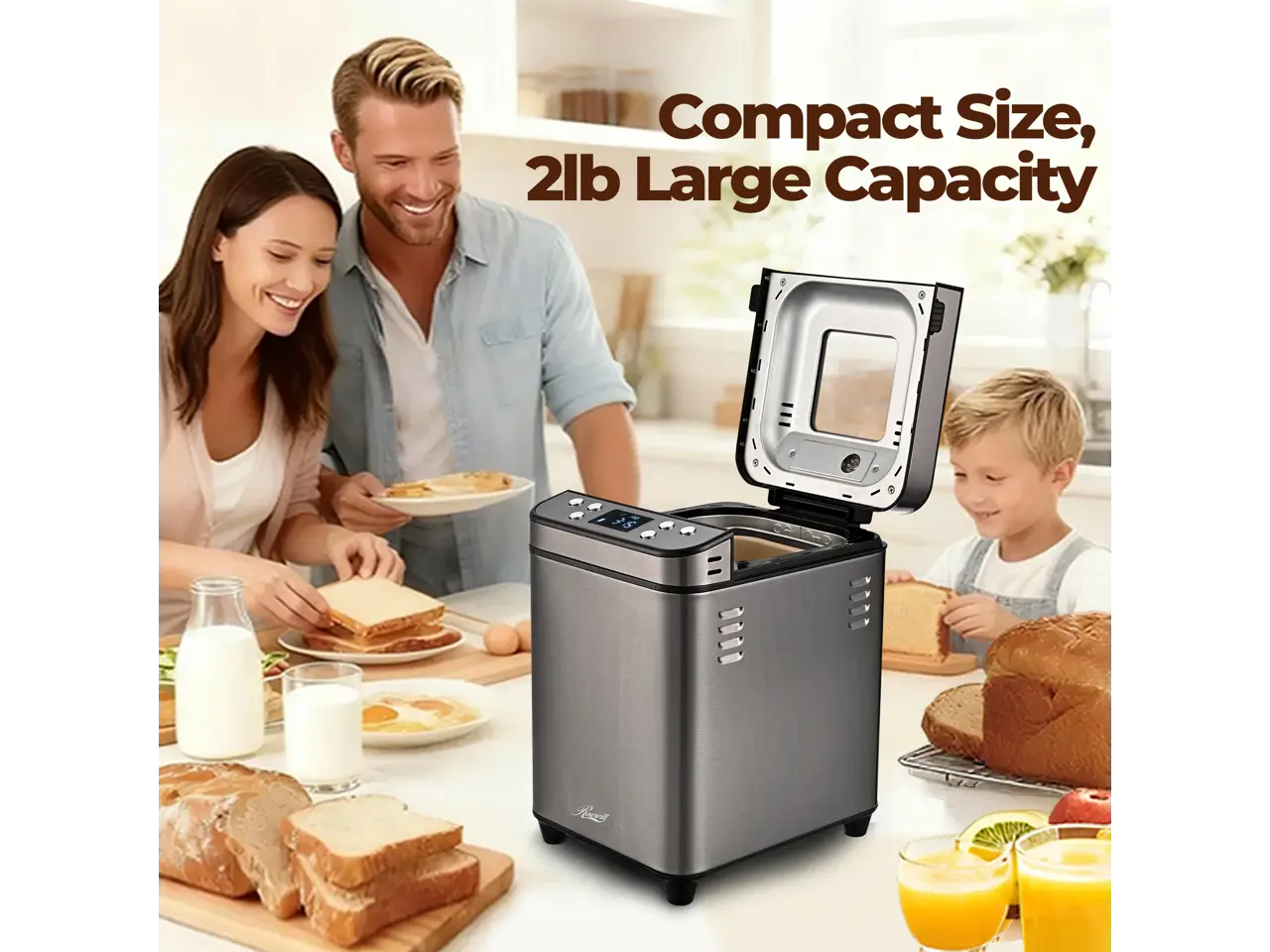·25 Programs & Family-Size Capacity: With 25 automatic functions - including Gluten-Free, Cake, Jam and more - and 3 crust colors, you can bake the perfect loaf every time. The 2LB capacity comfortably serves 5 - 6 people.