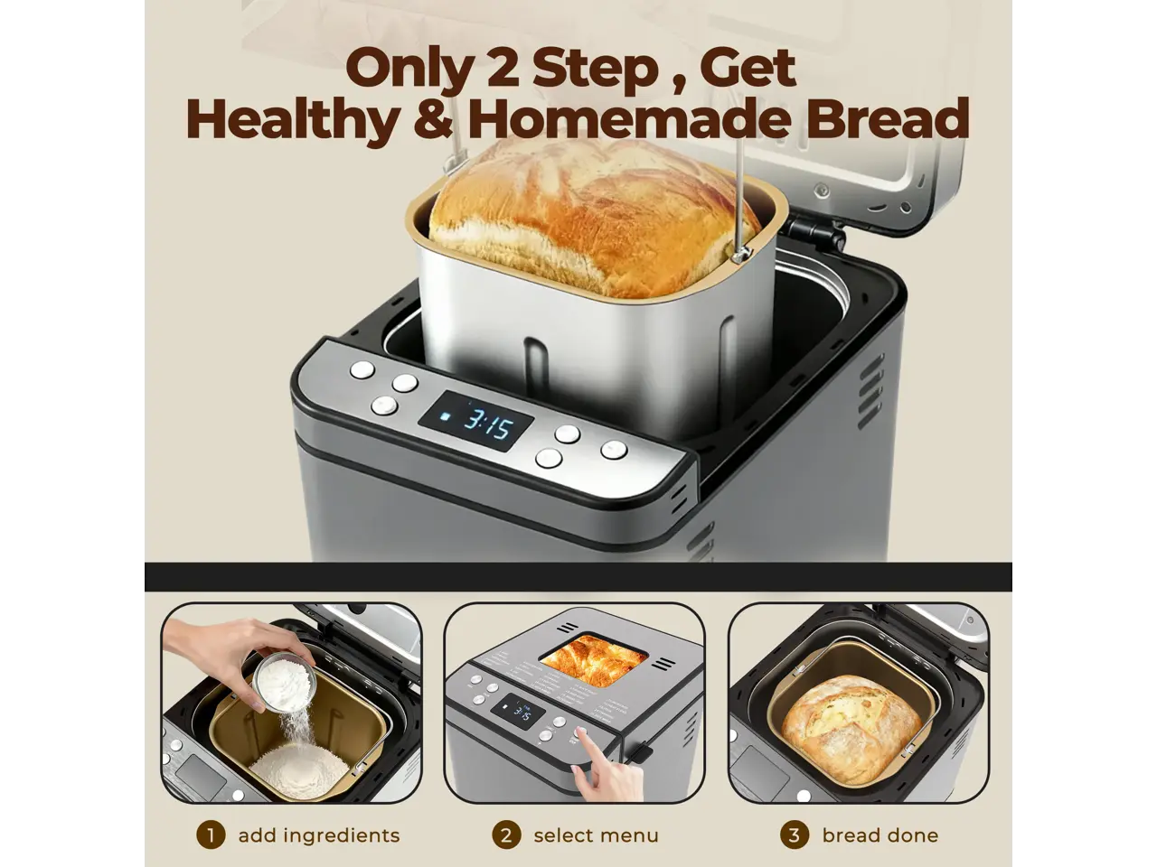 ·Flexible Timing & Power Recovery: Plan fresh bread around your schedule with a 15-hour delay start, 1-hour keep-warm, and 40-minute power recovery after interruption.