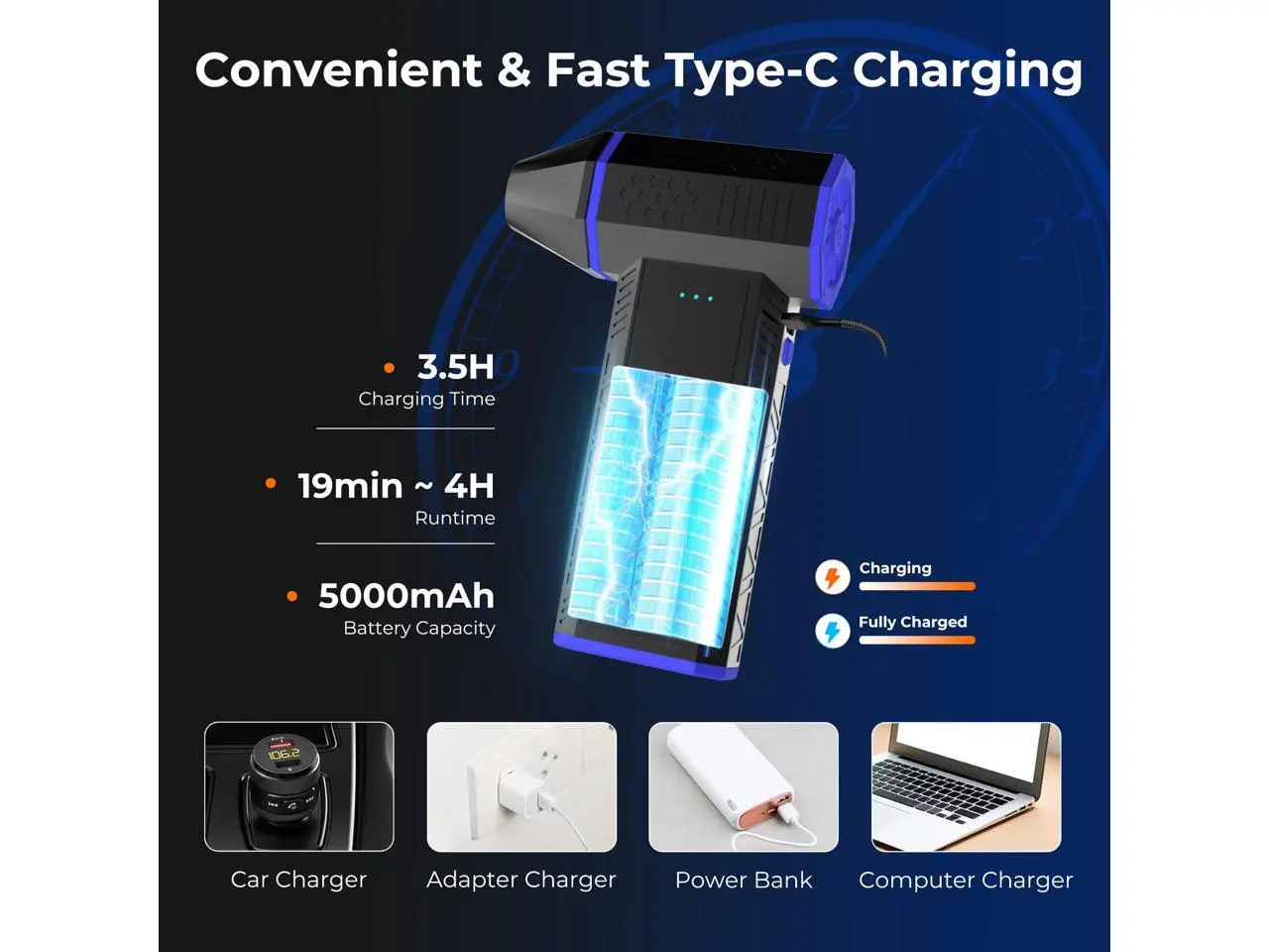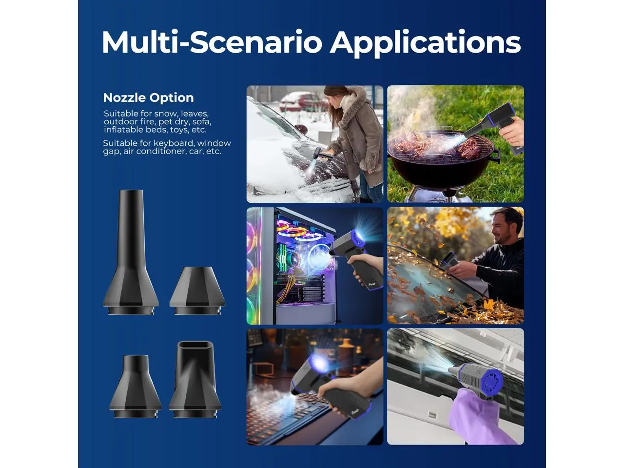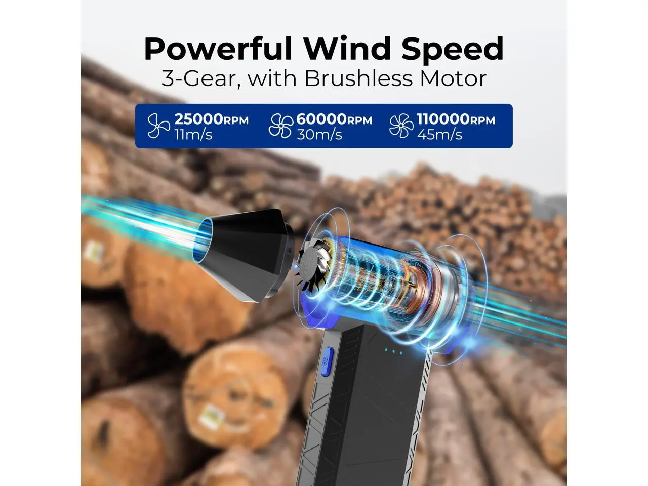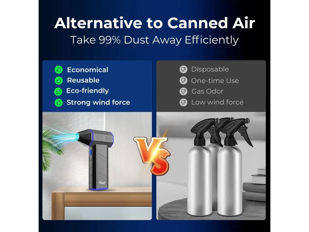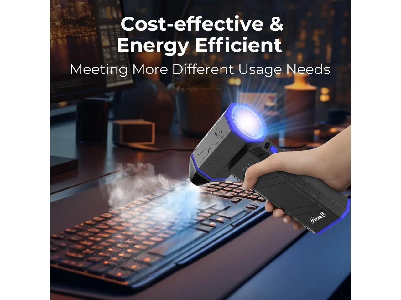 5. Rosewill Electric Air Duster-110,000 RPM Super Power Cordless Compressed Air Duster, 3-Gear Adjustable Mini Blower with Fast Charging, Dust Blower for Computer, Keyboard, Pet, House, Outdoor and Car