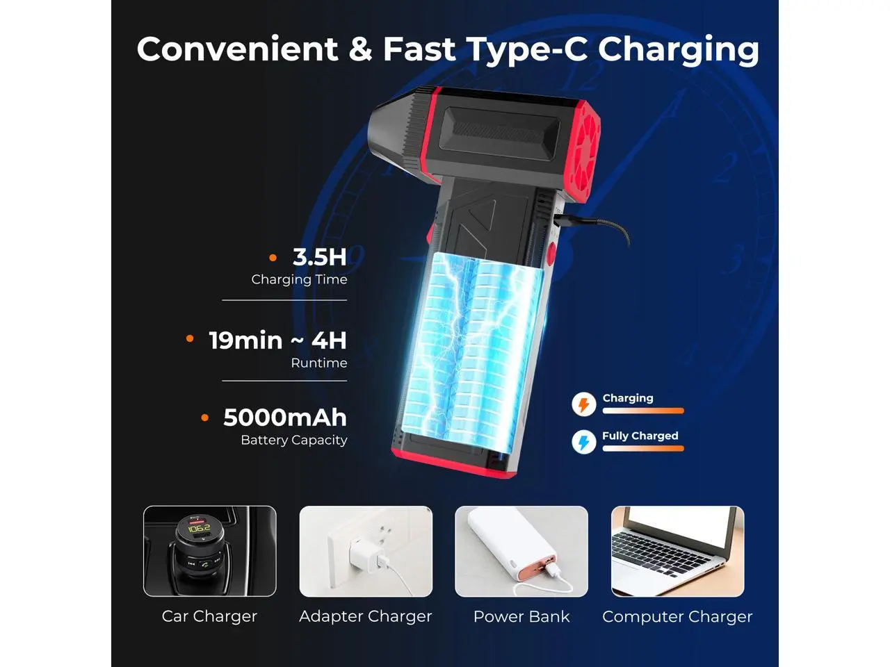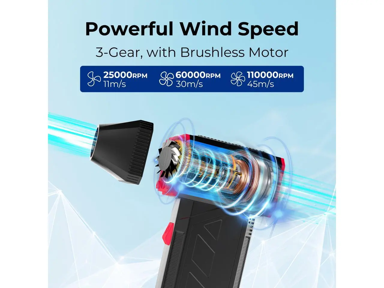 Rosewill Electric Air Duster - 120,000 RPM Super Power Cordless Compressed Air Duster, 3-Gear Adjustable Mini Blower with Fast Charging, Dust Blower for Computer, Keyboard, Pet, House, Outdoor and Car