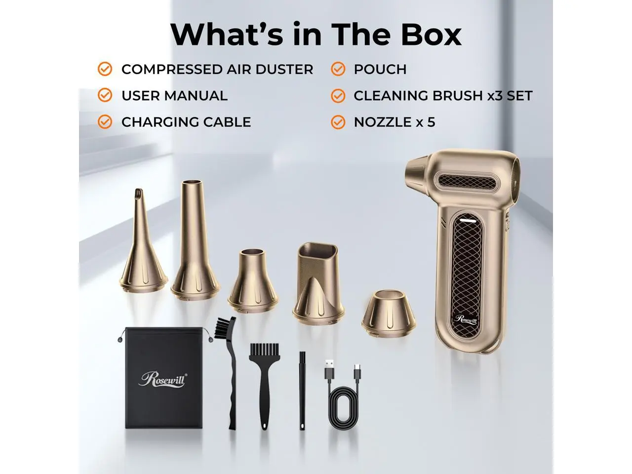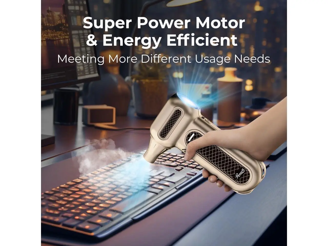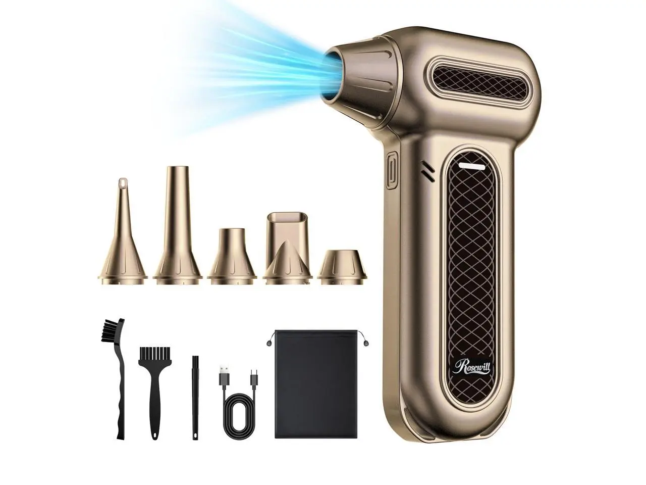 5. Rosewill Electric Air Duster - 130,000 RPM Super Power Cordless Compressed with Turbo Mode, 4-Gear Adjustable Mini Blower with Fast Charging, Inflation and Suction, Dust Blower for Computer, Keyboard