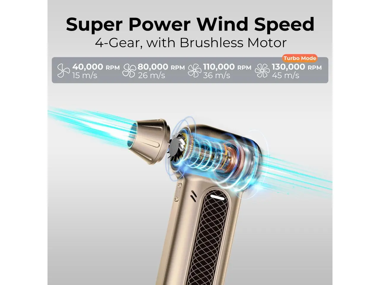 Rosewill Electric Air Duster - 130,000 RPM Super Power Cordless Compressed with Turbo Mode, 4-Gear Adjustable Mini Blower with Fast Charging, Inflation and Suction, Dust Blower for Computer, Keyboard