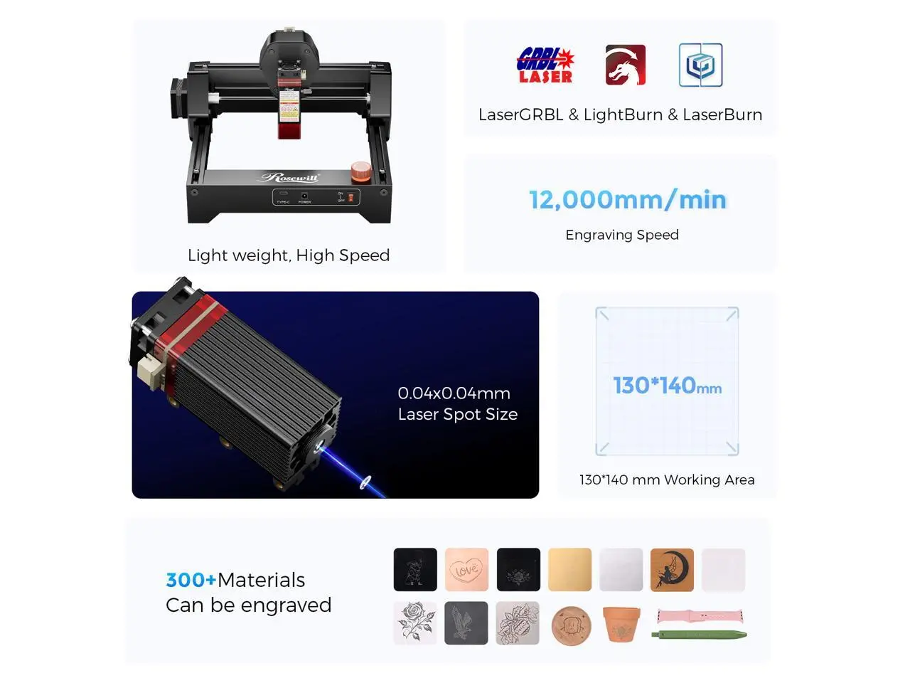 Rosewill  Mini Laser Engraver, 3.5W Diode Laser Engraving & Cutting Machine, 12000mm/min High Speed,  0.04mm Compressed Spot, ,130x140mm Engraving Area,Portable Engraver Eye Protection