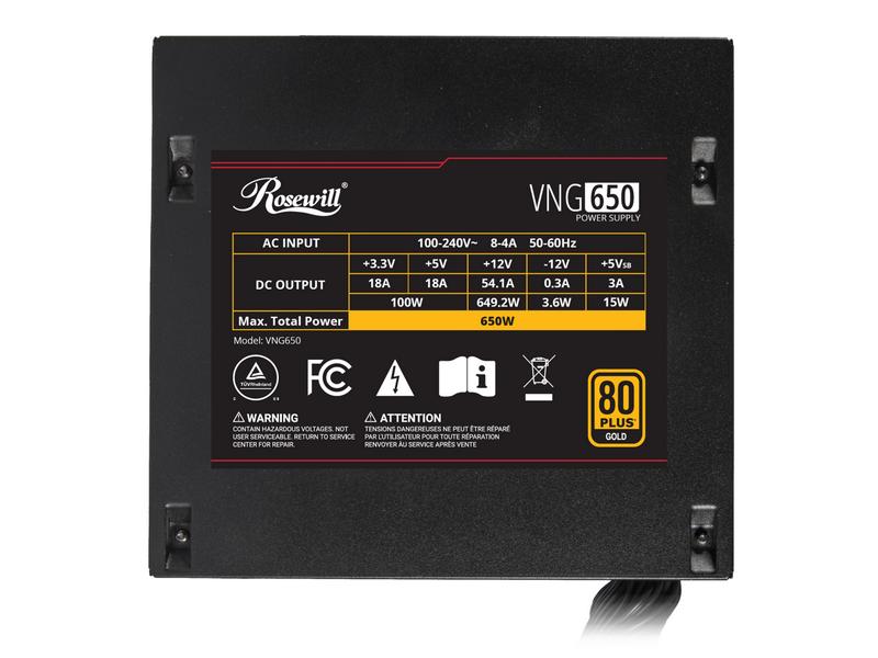 Rosewill VNG 650W 80+ Gold Certified, ATX 3.0 & 3.1 Compatible, Non-Modular, Low-Noise Power Supply, 450W PCIe 5.1 12V-2x6 Connector, High Quality Electrolytic Capacitor - 5 Year Warranty - VNG650