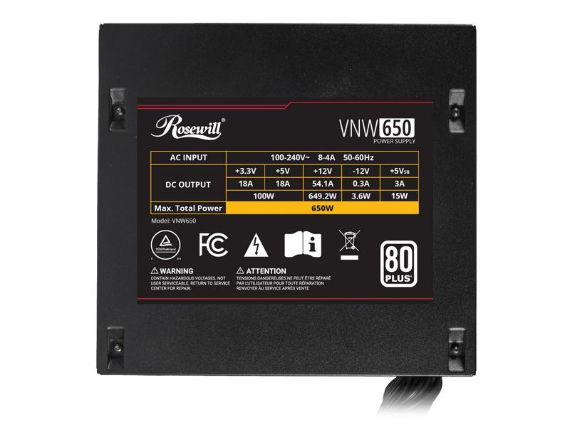 Rosewill VNW 650W 80+ White Certified, Non-Modular Active PFC Design, Low-Noise Power Supply, High Quality Electrolytic Capacitor, 120mm FDB Silent Fan - 5 Year Warranty - VNW650