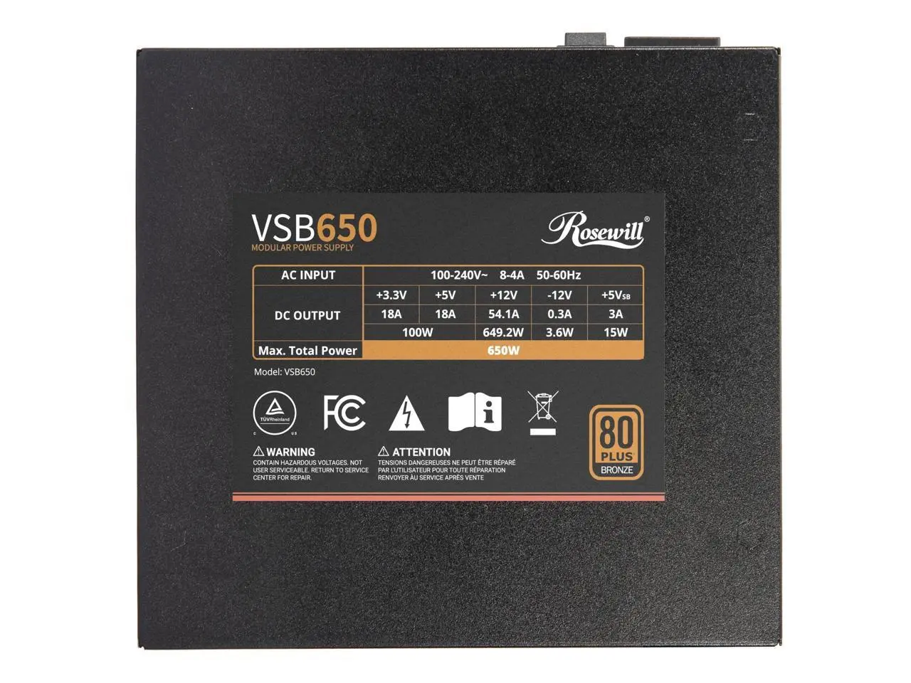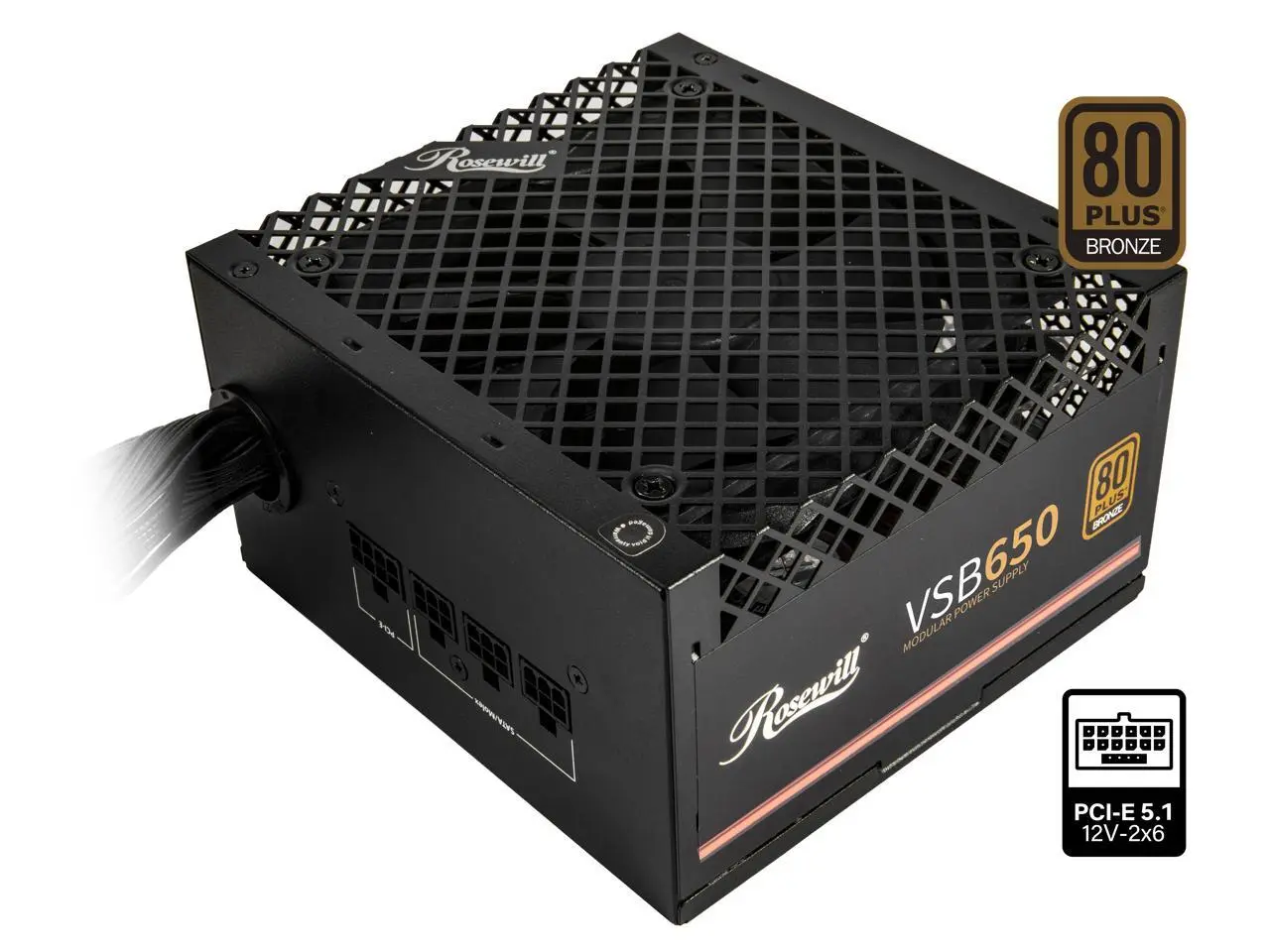 Rosewill VSB 650W 80+ Bronze, ATX 3.0 & 3.1 Compatible, Semi-Modular Power Supply, PCIe 5.1 12V-2x6 Connector, 105°C/221°F Japanese Capacitor, 120mm ICB Silent Fan - 5 Year Warranty - VSB650