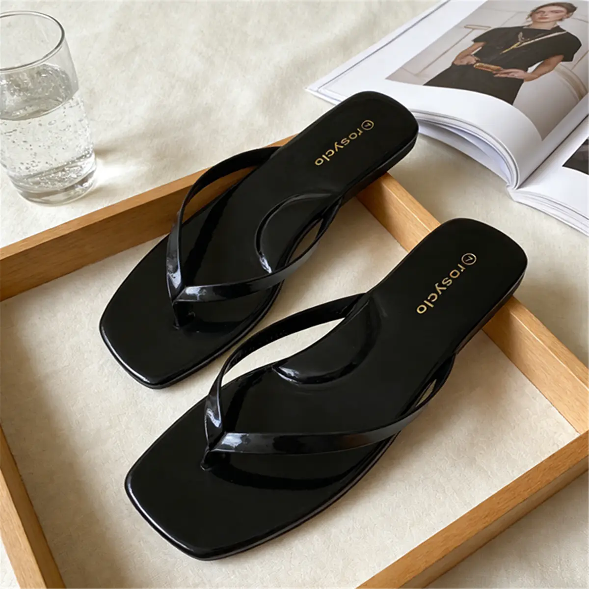 With a striking high-shine patent finish and a sophisticated square-toe design, these sandals elevate even the simplest outfit to a "runway" look.