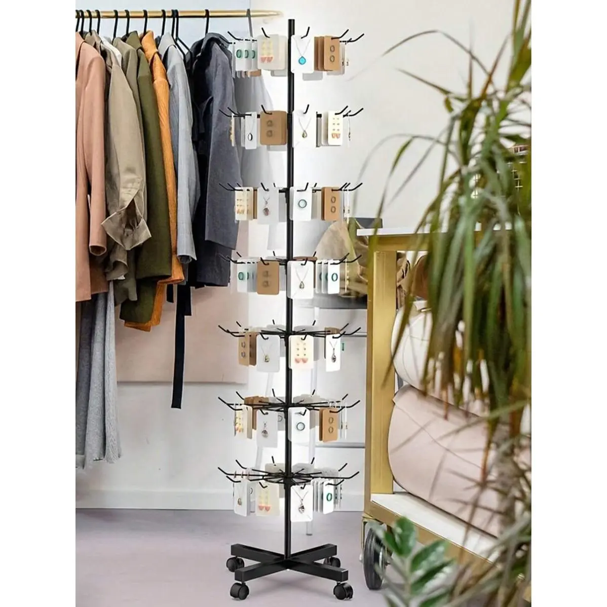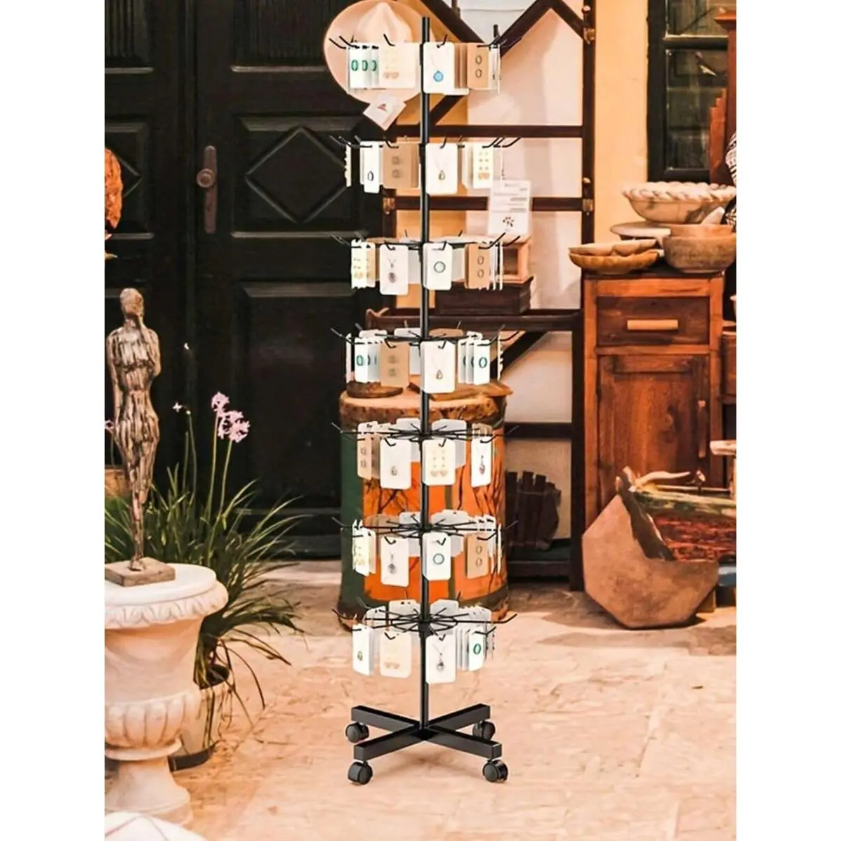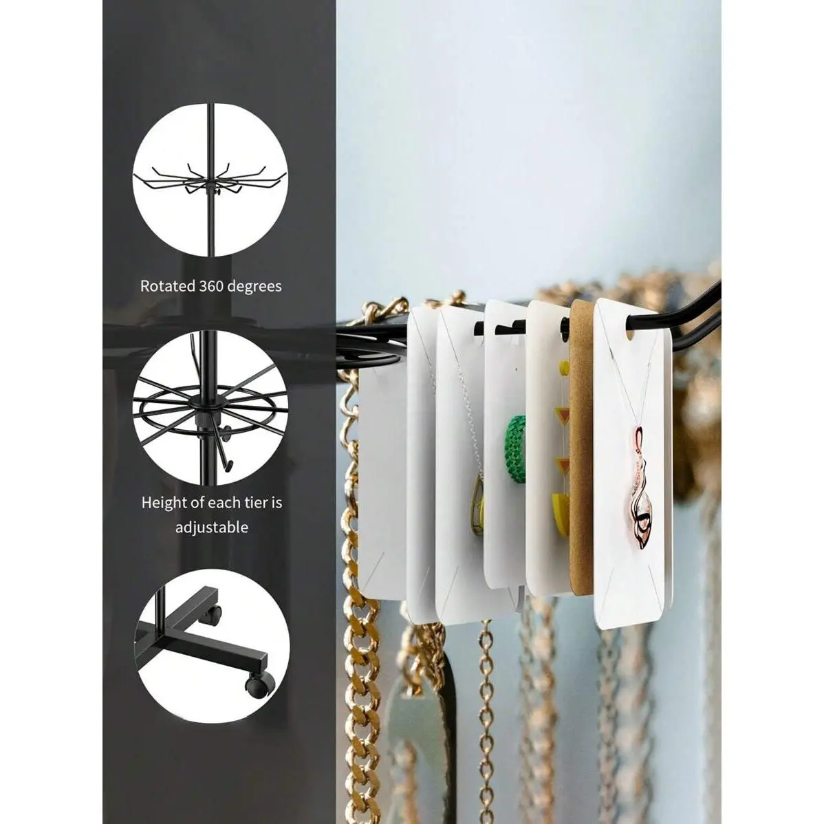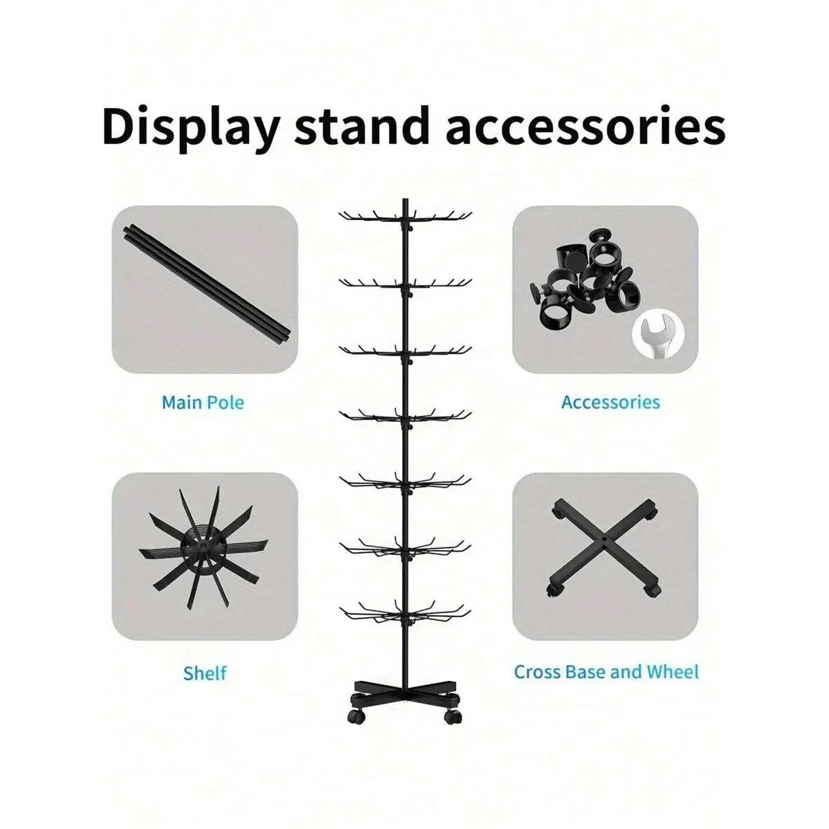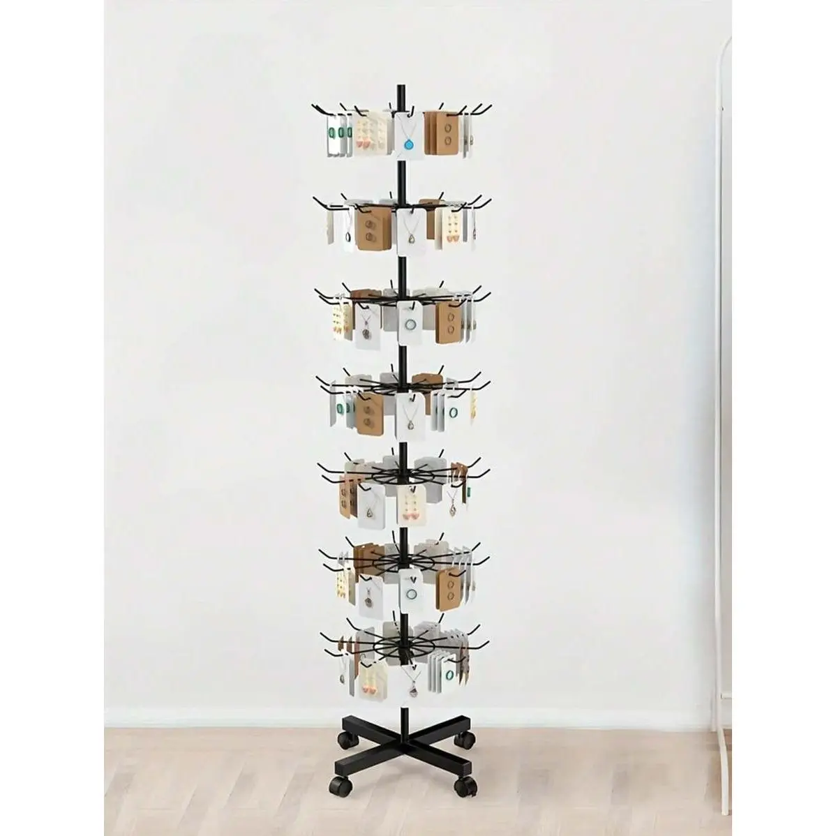 1pc 7-Layer Retail Display Stand, Store Display Stand Rotating Stand, Jewelry Keychain, Socks And Hats, Toy Show Movable Store Rotator, Black, Adjustable Height Valentine Day