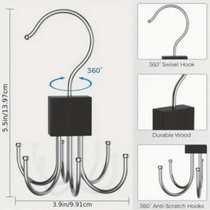 360° Rotatable Belt Hook, Durable Metal Storage Hook, Multi-Purpose for Belts, Scarves, Ties, Home & Dorm Organization #shoerackorganizer #homegoodshunt #closetorganizers #clothesorganizer #garagemusthaves #practicalhomegoods #decorativestorage #leatherratchetbelt #foodstoragesolutions #beltbuckles