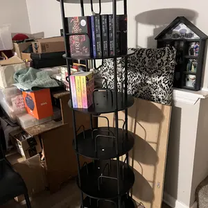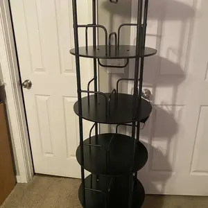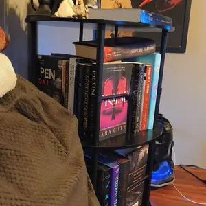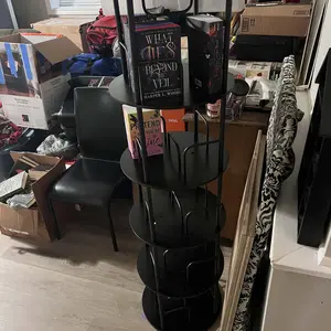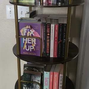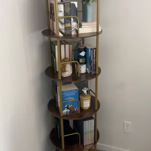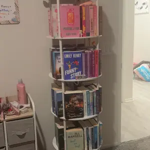 I absolutely love this bookshelf 😍 I currently have 93 books in there are it still turns smoothly. I love that it's doesn't require as much room as traditional bookcases and looks like a statement piece! I highly recommend it.