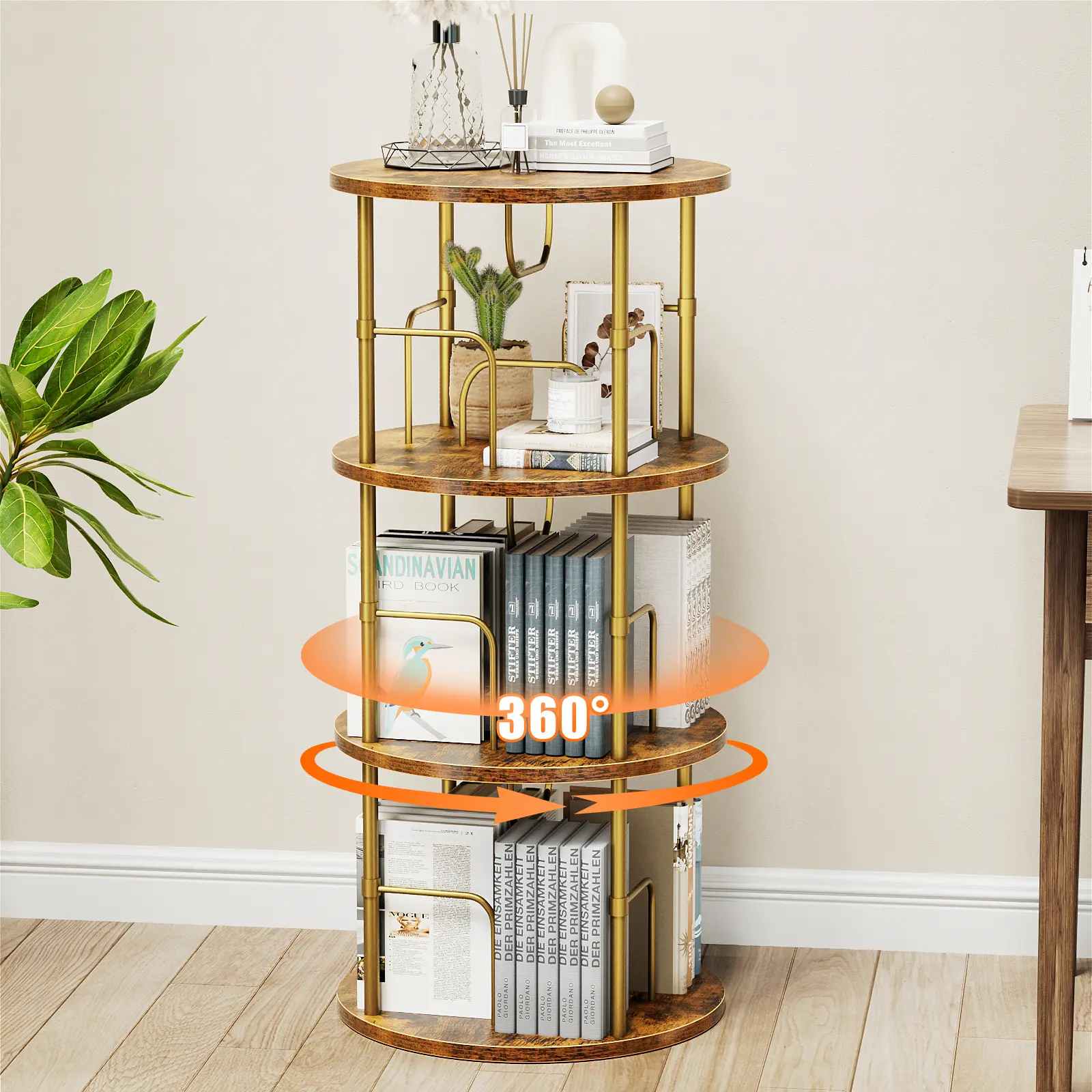 It looks very nice, just as i expected! It was simple to put together I had zero issues, the rotating feature works great. Only downside is that the wooden shelves left a thick black residue all over so i recommend wiping them down/cleaning them before putting books on it.