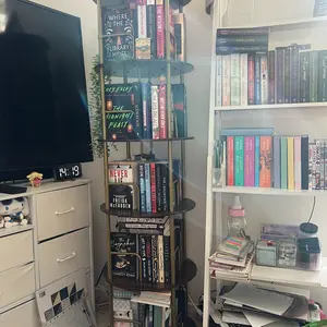 【Selected Materials & Multiple Usage】: Rotating bookcase can be used as a bookcases, storage shelf, or display rack for the living room, bedroom, playroom, etc. And our swivel bookcase is made of thickened P2 MDF boards and a sturdy metal frame, each tier is separated into four compartments, easy to organize and prevents books from tipping over,better for use.