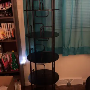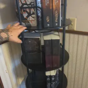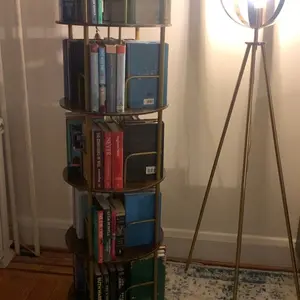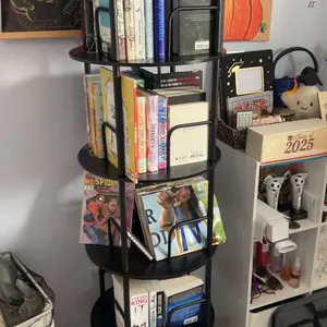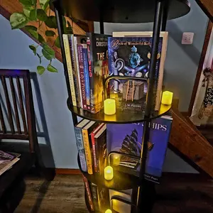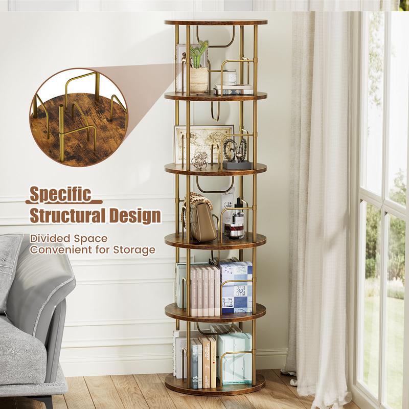 【Smooth 360° Rotating Bookshelf】:Spinning bookshelf is equipped with a turnplate on the bottom,can rotate 360 degrees freely. With a gentle spin, easily get the items you need. Besides, the open book shelf are perfect for all your books and displays, adding a lot of artistry and flexibility. Unique round bookshelf design can be avoided bumped on the edges, more thoughtful!