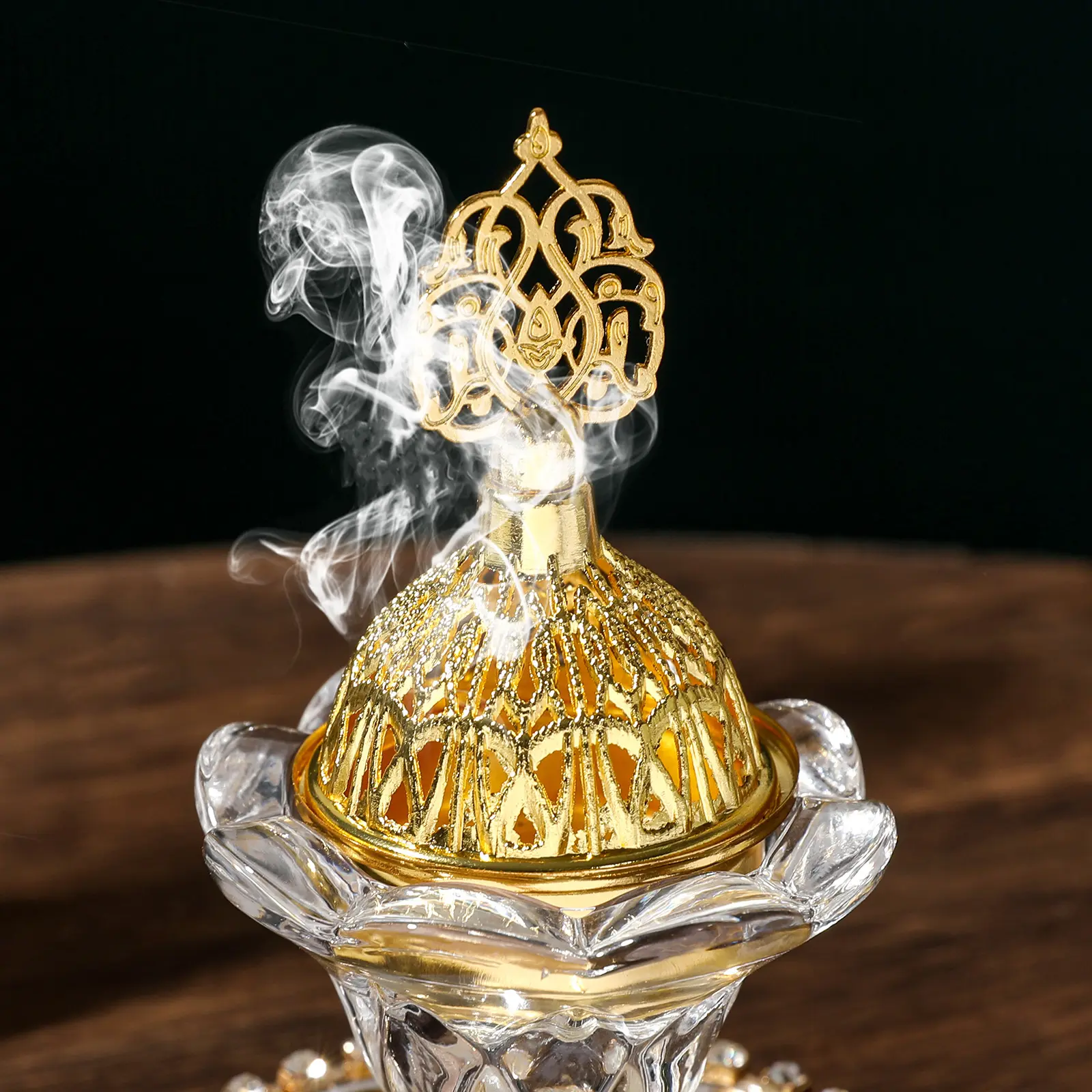 Rotating Crystal Pattern Essential Oil Diffuser, Glass Candle Holder Decorative Ornament for Living Room Party Celebration Decoration