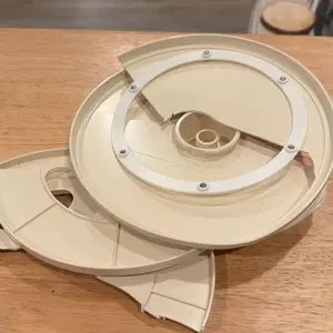 The cover for the first one does not fully fit. The second one is warped into an oval shape rather than a circle, so it does not fit. The sound of the display spinning is also a bit loud to me.