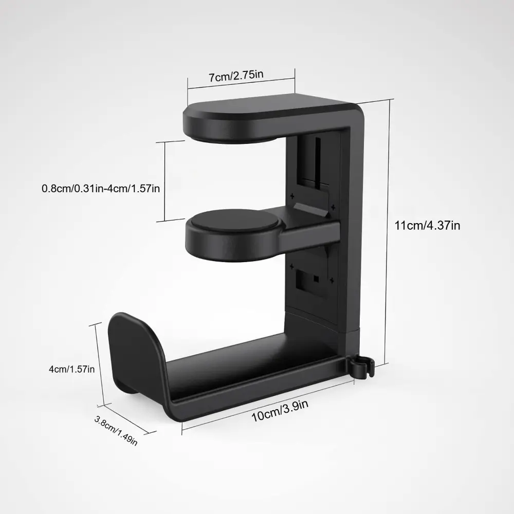 Rotating headset bracket-computer game headset bracket, adjustable clip under the table, with 360-degree rotation and cable clip organizer-black