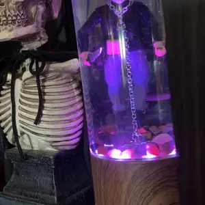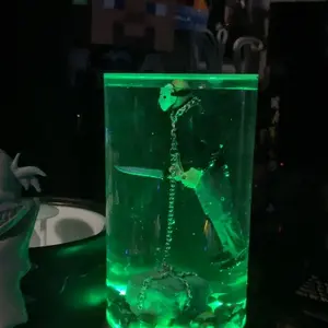 ·【Premium Materials Water Lamp】Made from durable resin and plastic, this lamp features a cylindrical acrylic jar illuminated with LED lighting, creating a captivating ambiance and bringing your horror collection to life. Comes with a remote control for easy lighting adjustments.