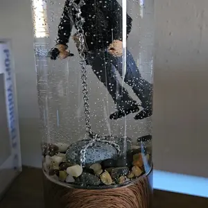 ·【Movie Memorabilia】Weathered chain, genuine rock, and gravel for lake bottom. Glass suction attachment ensures an afloat display. Includes a USB-C charging cable, allowing you to choose between charging or using batteries for power.