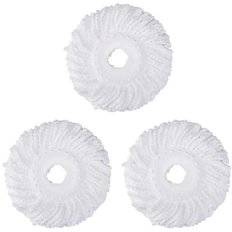 3 Pack Spin Mop Replacement . Microfiber Spin Mop Refills Reusable mop heads, super fine microfiber, machine washable. You will get 3-pack replacement mop heads for your spin mop. Follow the picture instructions to stall it onto your mop, very sturdy and easy to use. Perfect replacement mop head for standard 6" to 6.3" spin mop system. Please make a measurement of your existing mop head before you place your order, just in case it's not a perfect fit.
