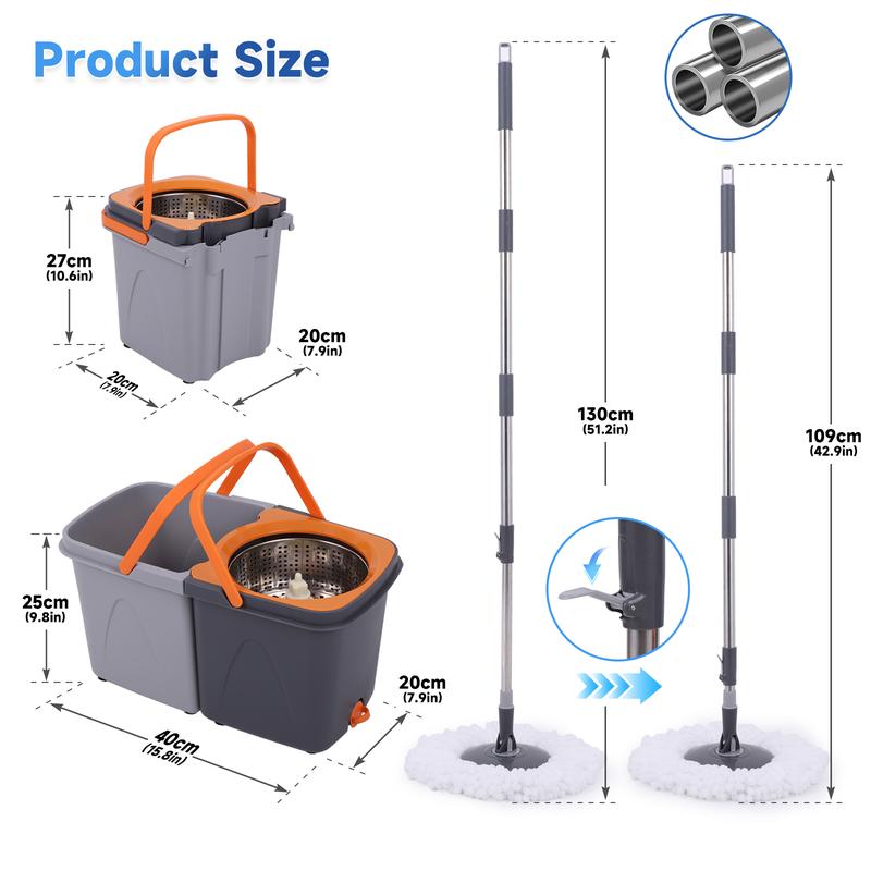 Effortless Spin Drying- No Manual Wringing: Simply place the mop head into the spin bucket, grip the handle, and push it up and down.- Rapid Drying: The mop head spins rapidly to dry, saving you effort and time.- No Damp Mop: No worries about a damp mop or a wet floor after cleaning.