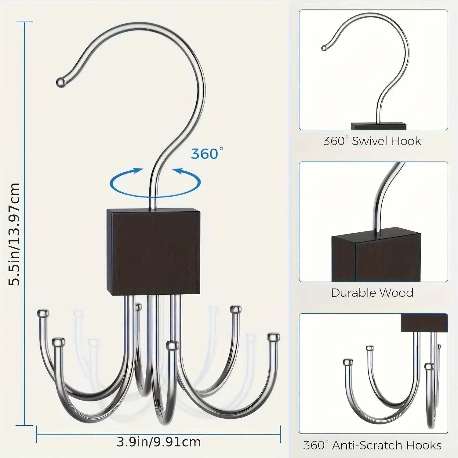 2 pieces of six claw rotating multifunctional hooks: clothes, hats, scarves, wardrobe storage hooks - door hooks - bag hooks - wooden polished surface hooks