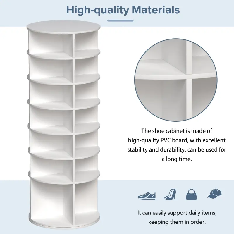 Rotating Shoe Rack Tower 7-Tier Spinning Shoe Organizer Free Standing 360° Revolving Storage for 28 Pairs of Shoes High Bottom Design Footwear OrganizationRotating Shoe Rack Tower 7-Tier Spinning Shoe Organizer Free Standing 360° Revolving Storage for 28 Pairs of Shoes High Bottom Design Footwear Organization