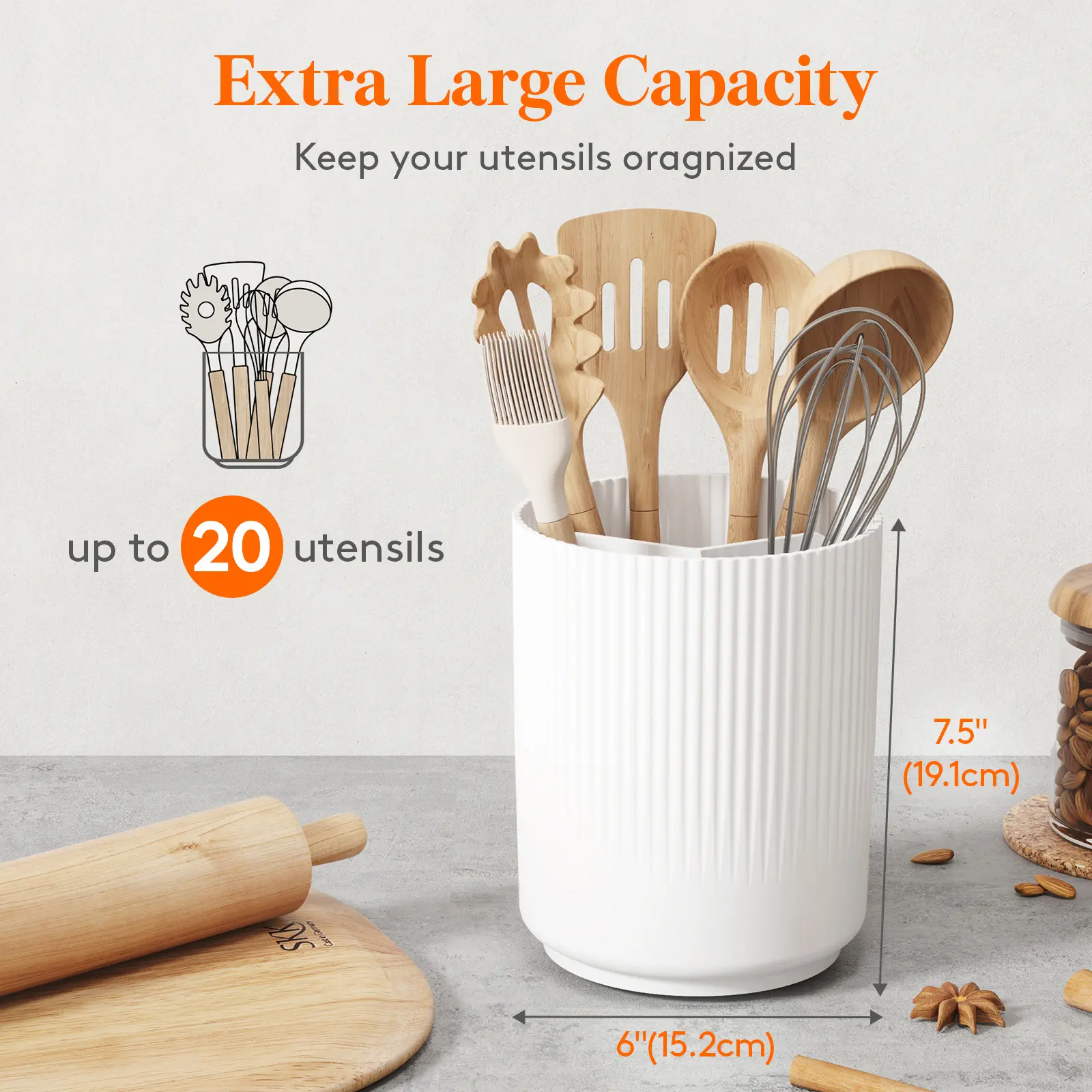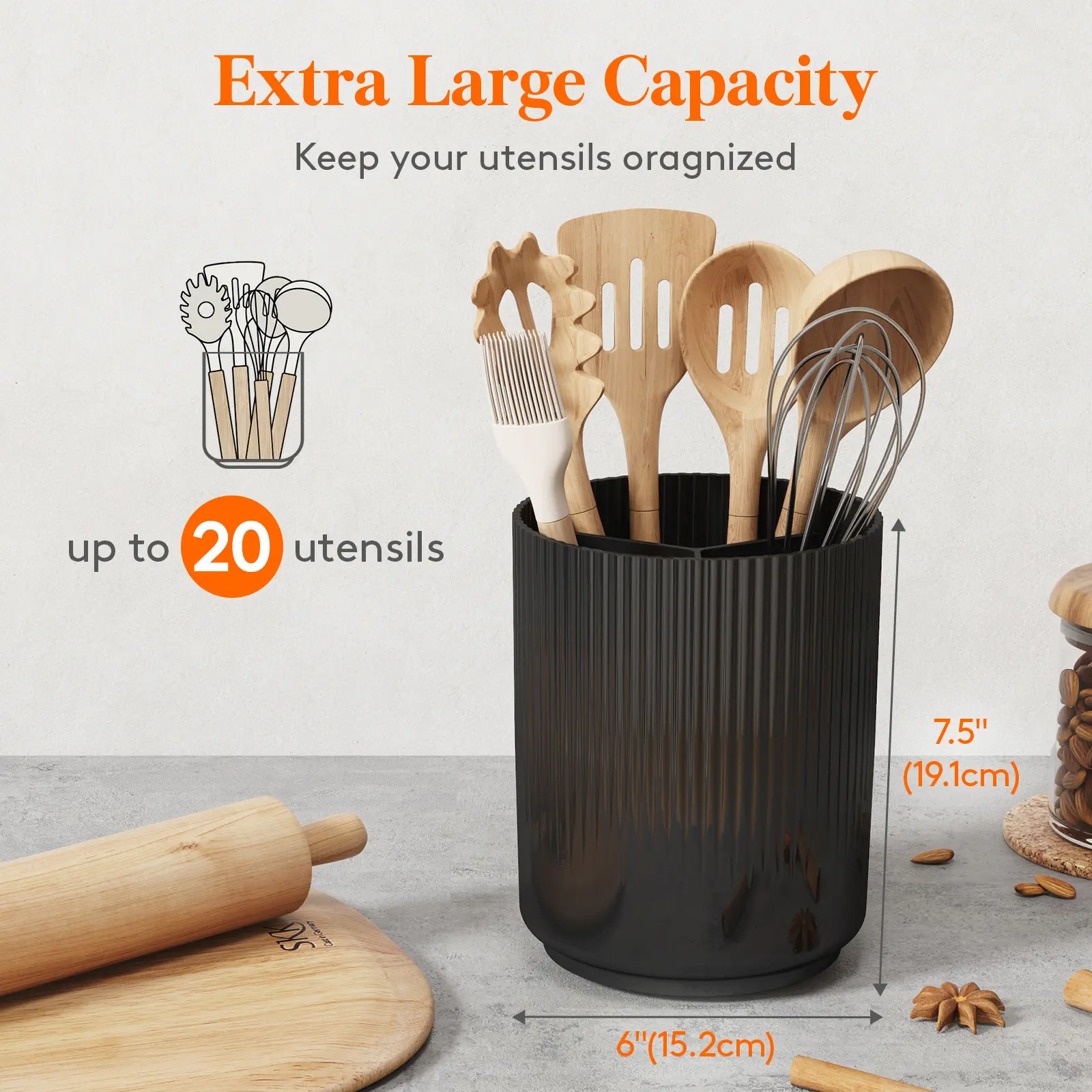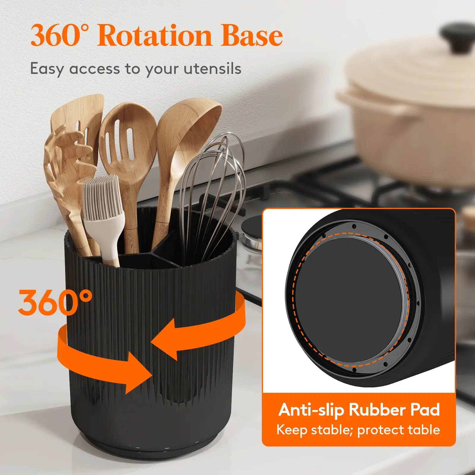 Key Selling Point: Heightened, 20-utensil rotating rack keeps spatulas upright and instantly accessible while drying fast through built-in drainage,Balck/White,1/2pack.