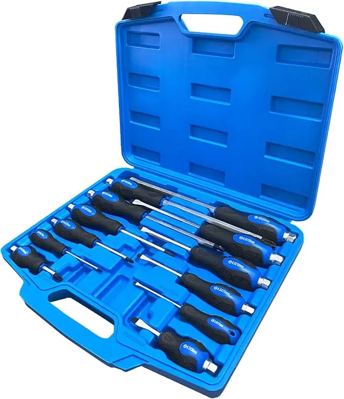Multi-purpose use- 6 pieces slotted and 6 pieces phillips professional screwdriver, all packed in a compact and portable carry case, covering your various needs in domestic appliances, automotive, and home improvement